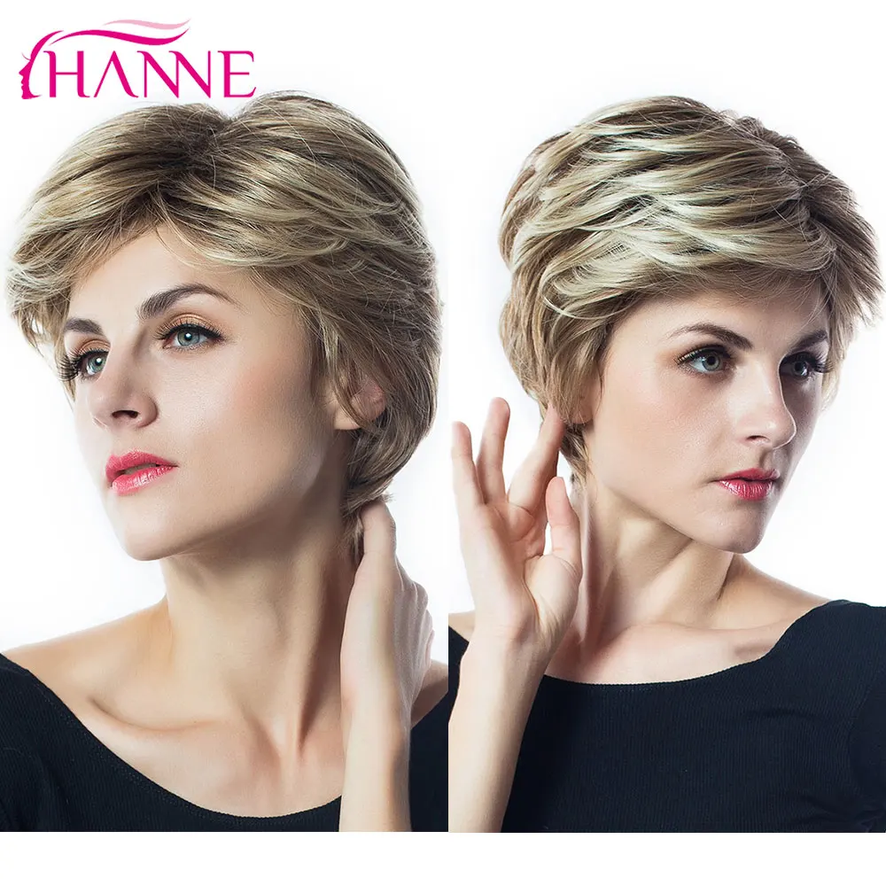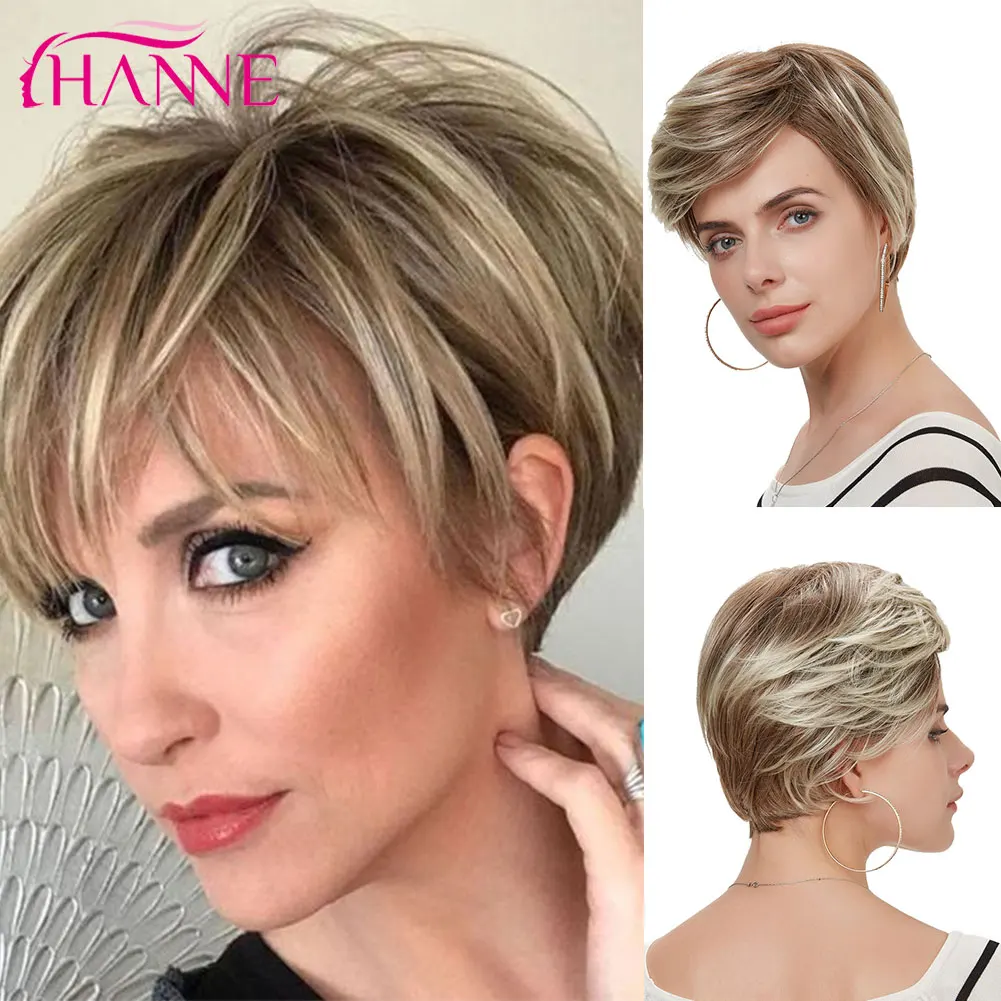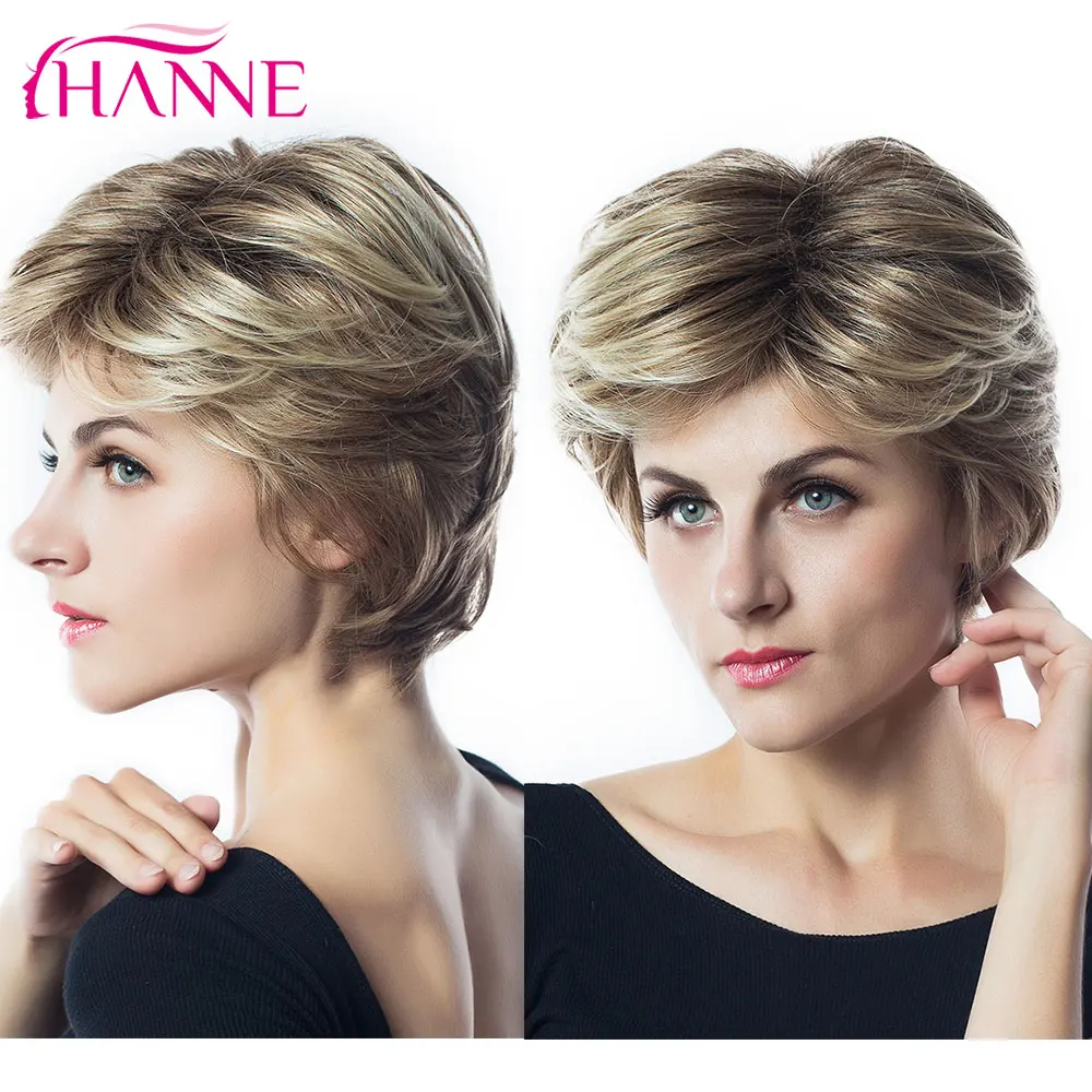 HANNE Mix, коричневые и светлые высокотемпературные синтетические волосы, верхний парик ручной работы, термостойкий афроамериканский короткий парик