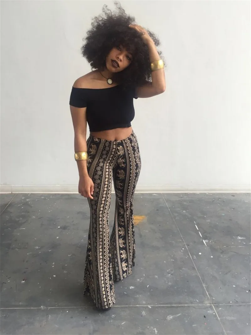 Брюки-клеш Женские в богемном стиле, модные длинные свободные штаны с этническим африканским принтом, брюки с широкими штанинами, леггинсы с широкими штанинами в стиле хиппи