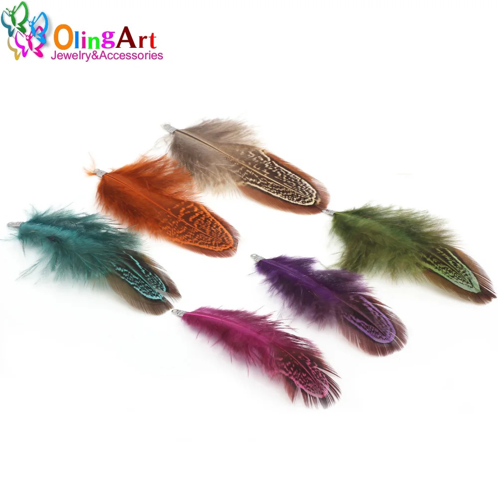 OlingArt Красочные Окрашенные натуральные перья кисточки 12 шт. 7 см женские серьги браслет колье DIY Изготовление ювелирных изделий брелок Подвески
