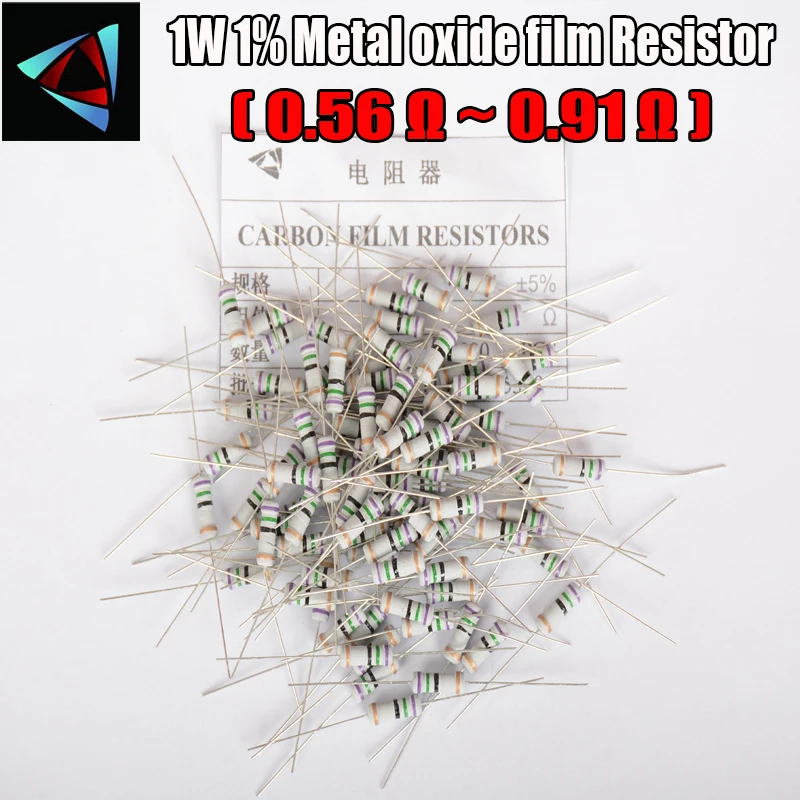 20 шт. 5% 1 Вт металлоксидный пленочный резистор 0,56 0,62 0,68 0,75 0,82 0,91 Ом карбоновый пленочный резистор