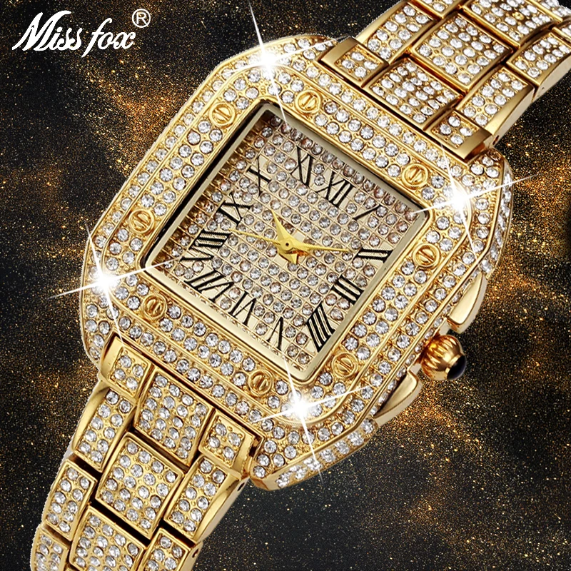 Уникальные женские часы MISSFOX, роскошный топовый бренд 2017 с Стразы, дешевые китайские часы, швейцарские противоударные водонепроницаемые часы