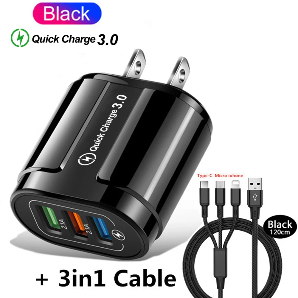 Зарядное устройство с 3 USB-портами, быстрая зарядка 3,0 для iphone...