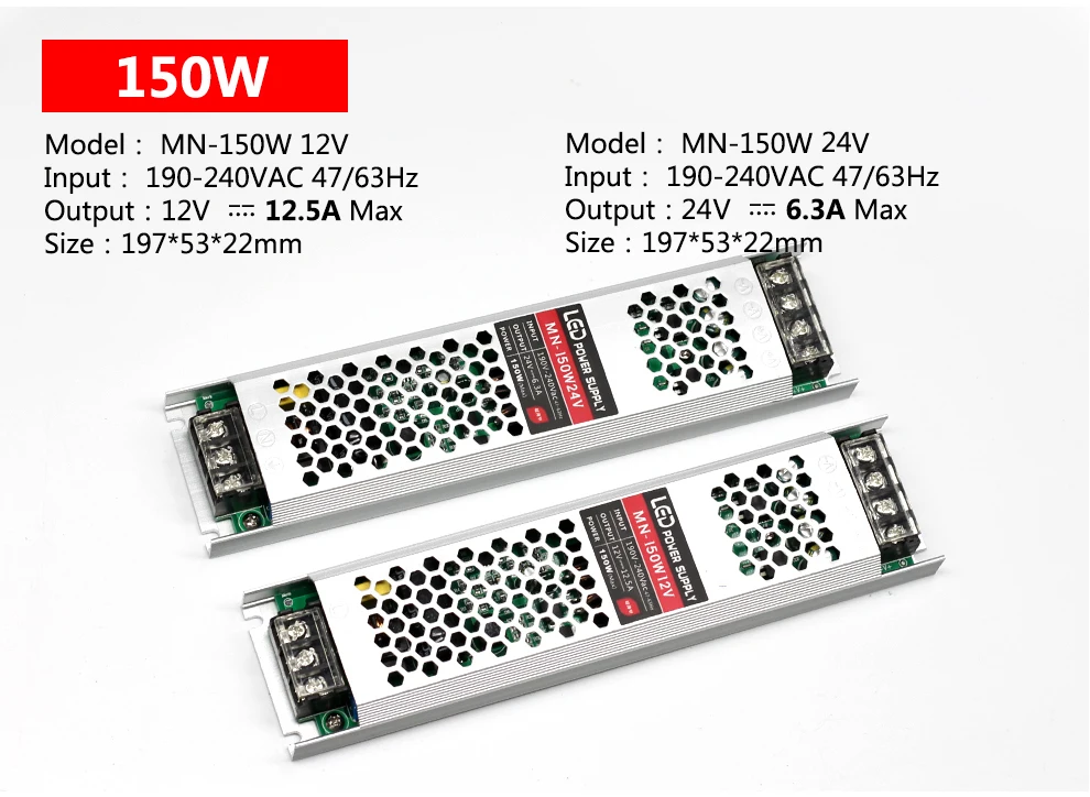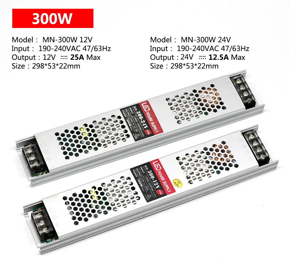 Ультра тонкий светодиодный источник питания DC 12V 24V Трансформаторы освещения 60W 100W 150W 200W 300W 400W AC190-240V драйвер для светодиодных лент
