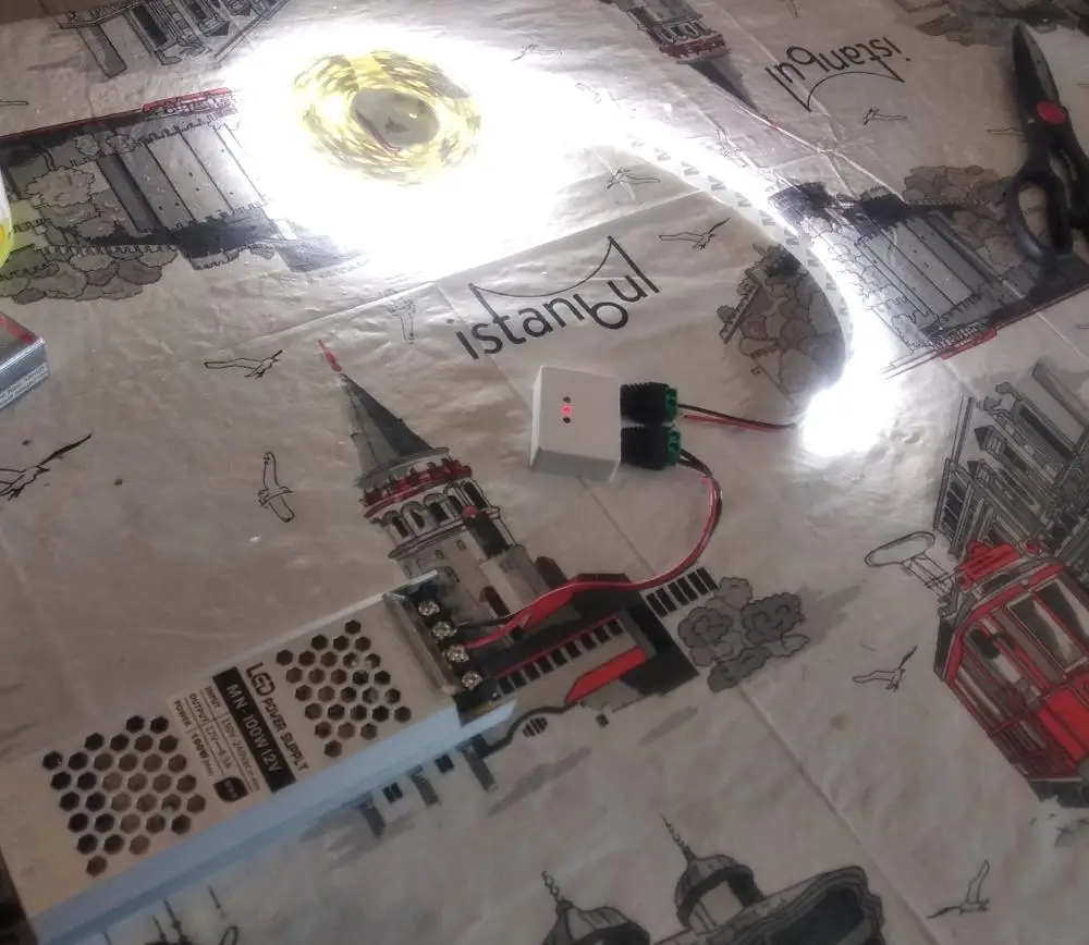 Работает. Маленький и компактный. Расположил на кухне для питание ленты 3 метра