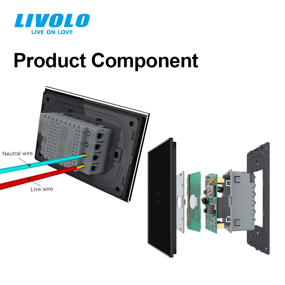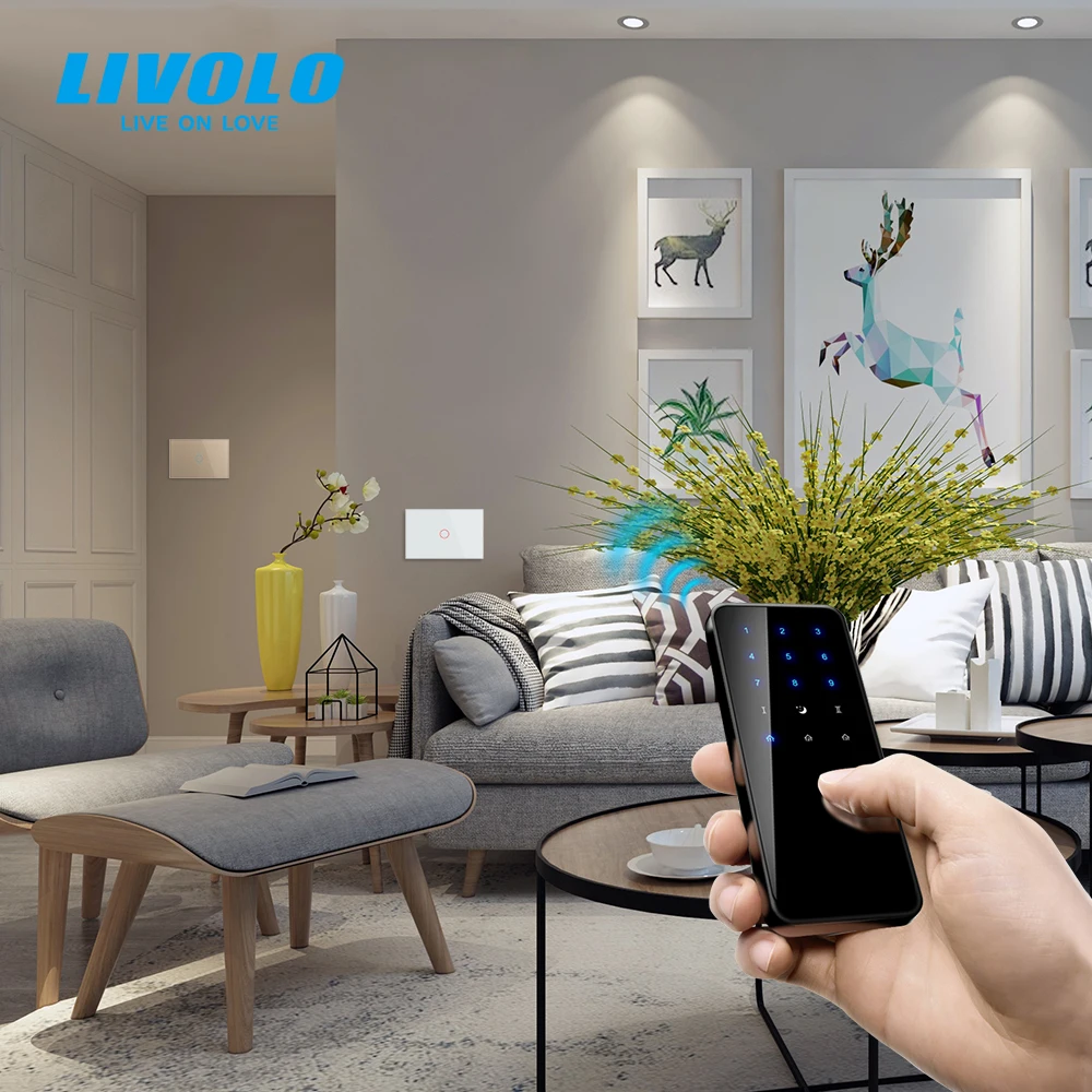 Выключатель сенсорный Livolo со стеклянной панелью, 110-250 в перем...