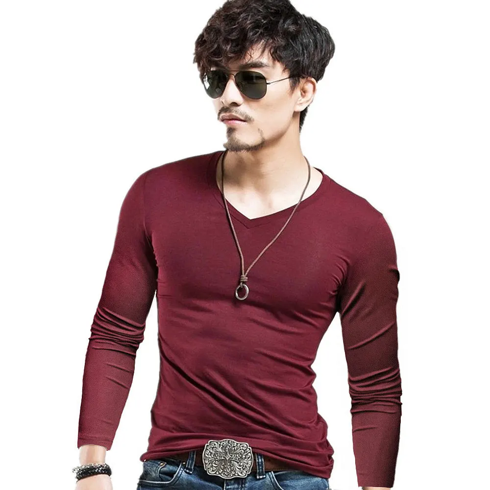 Мужские футболки с длинными рукавами и v-образным вырезом