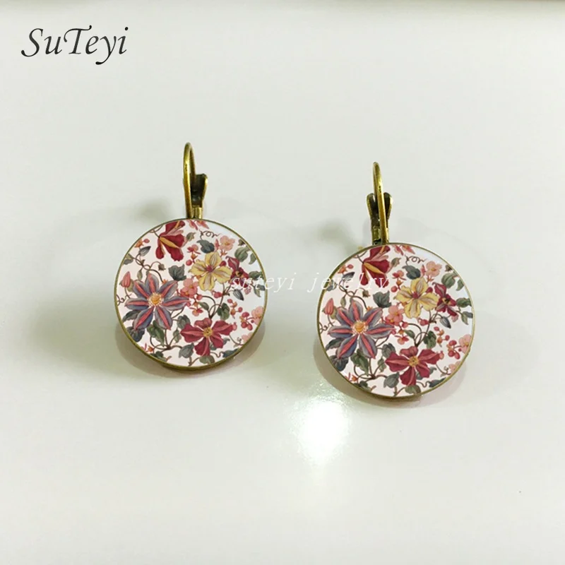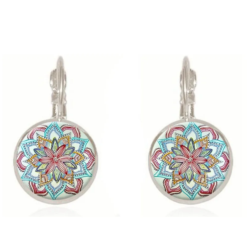 SUTEYI Шарм хна Йога амулет женские серьги круглые стеклянные кабошон серьги ювелирные изделия богемные Мандала серьги для женщин
