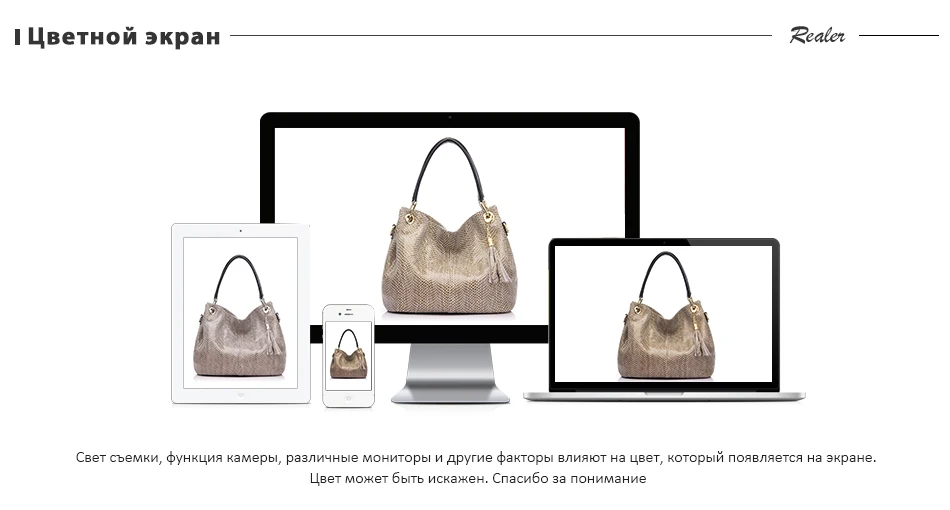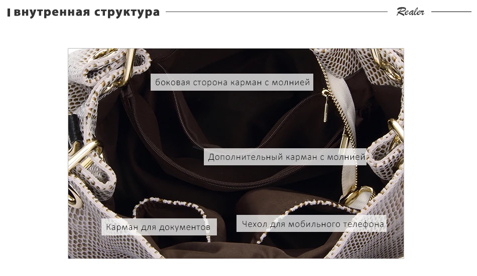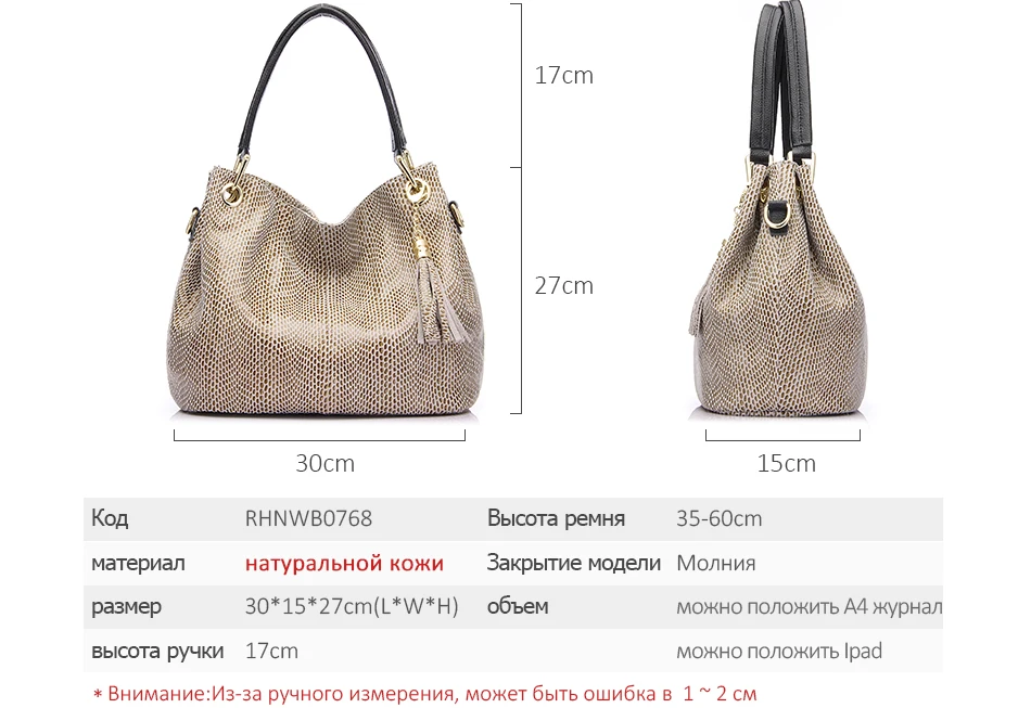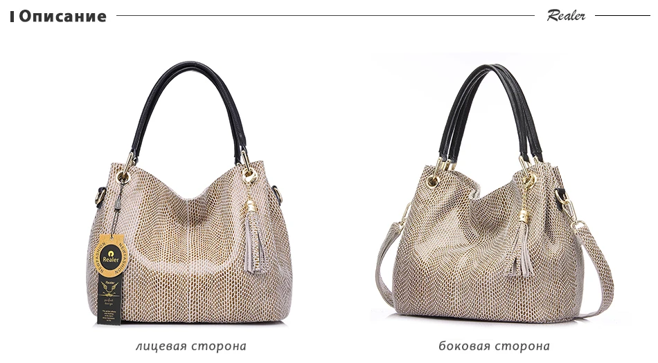 Брендовая сумка Realer изготовлена из натуральной кожи, приятной на ощупь. Швы выполнены качественно, торчащих ниток нет. Фурнитура выглядит дорого и прекрасно дополняет сумку. Во внутренней части находится боковой карман с молнией, дополнительный карман с молнией, карман для телефона, карман для документов и центральное отделение. Размеры: 30x15.5x27см. Вес: 900г. Высота ручки 17см. Максимальная длина ремешка через плечо 130см. Заказывая сумку дополнительно вы получаете украшение (кожаная кисточка), ремень через плечо, а так же фирменный пакет для хранения. Товар выглядит точно так же, как на фото у продавца. На моих фото отсутствует кисточка, но она в наличии. Присутствует характерный запах для кожаных изделий, но он выветривается. Курьерская доставка в течении месяца.