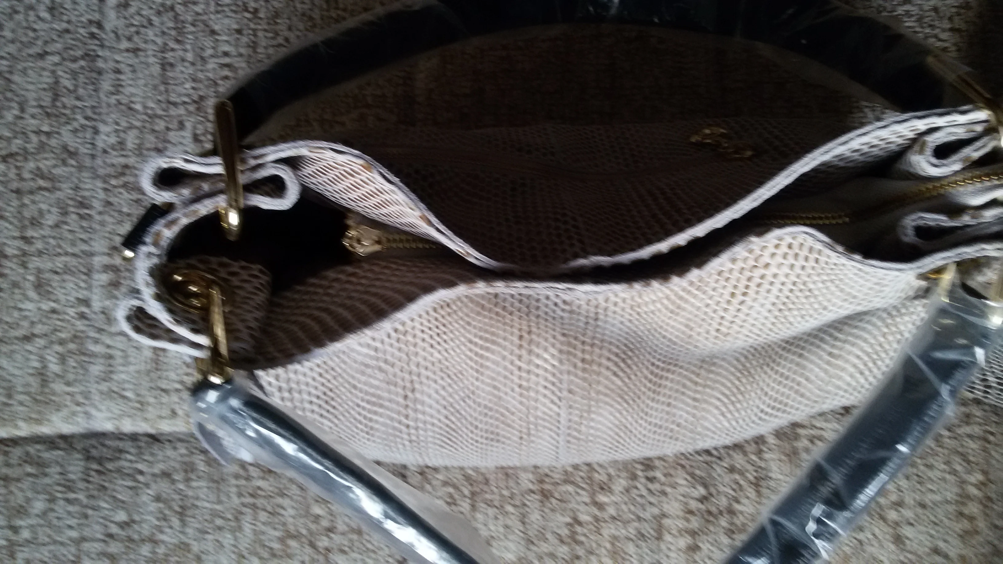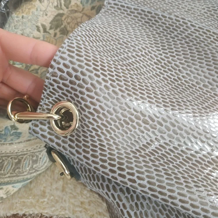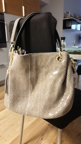 Красивая сумка. Не имеет запаха, может быть немного. Я купил бежевый цвет. Очень хорошо Сумка пришла быстро. С серебряной сумкой. Выглядит в хорошем качестве. Возможно, я куплю еще один.