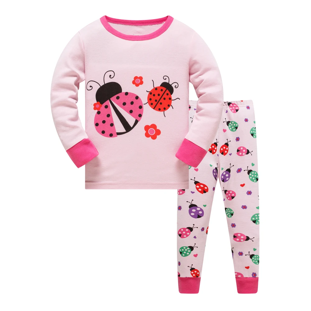 Хлопковый осенний комплект детской одежды с изображением божьей коровки, пижама с длинными рукавами спортивный костюм для девочек розовый слон для От 3 до 8 лет детей