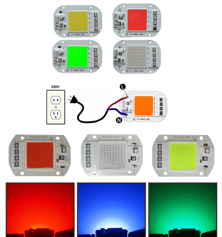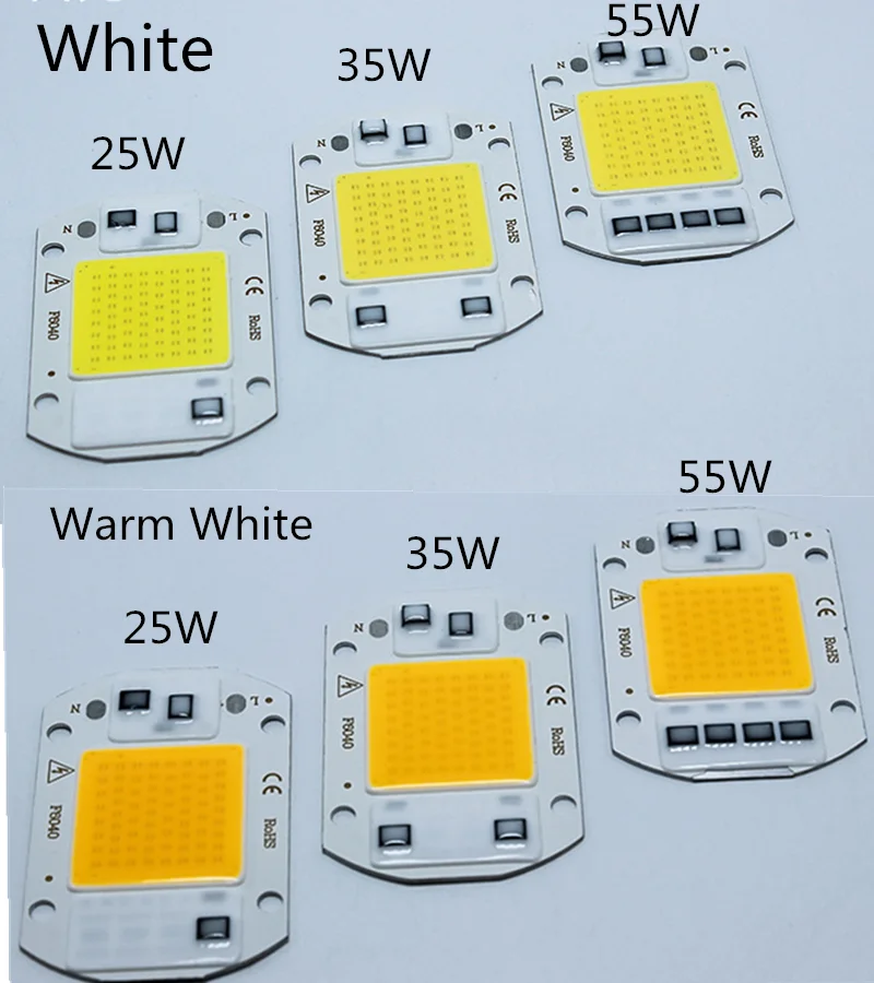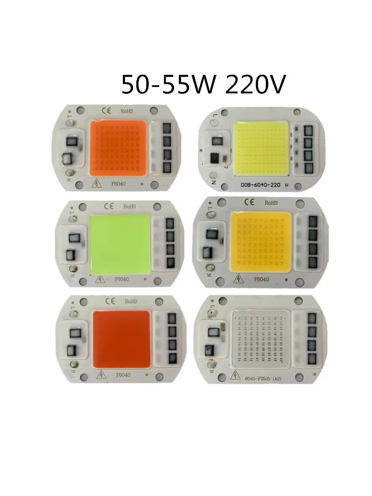 LED COB SMD 50 Вт 55 Вт AC 220 В Белый Красный Синий Зеленый Желтый Розовый нм Смарт IC драйвер высокой мощности IC чип лампы для прожектора