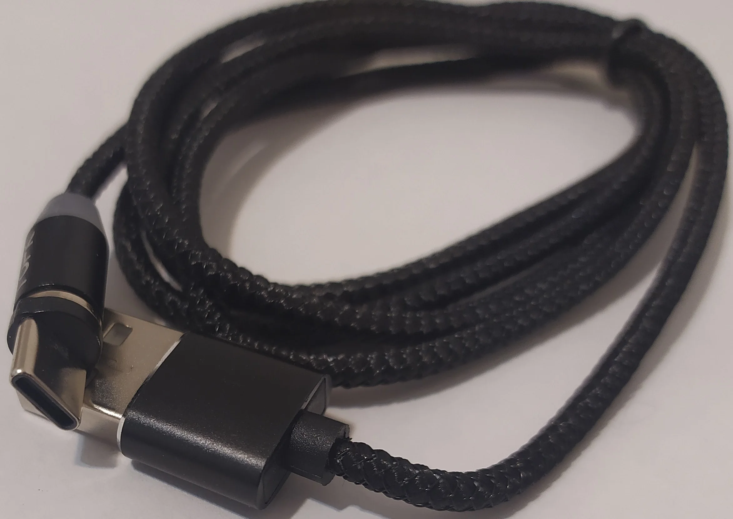 кабелек в пластиковой оплетке, длинна метровая, быструю зарядку на моем мезу нот 8 поддерживает. сделан вполне качественно для таких кабелей, диаметр магнитного коннектора совместим с другими такими же кабелями(8мм)