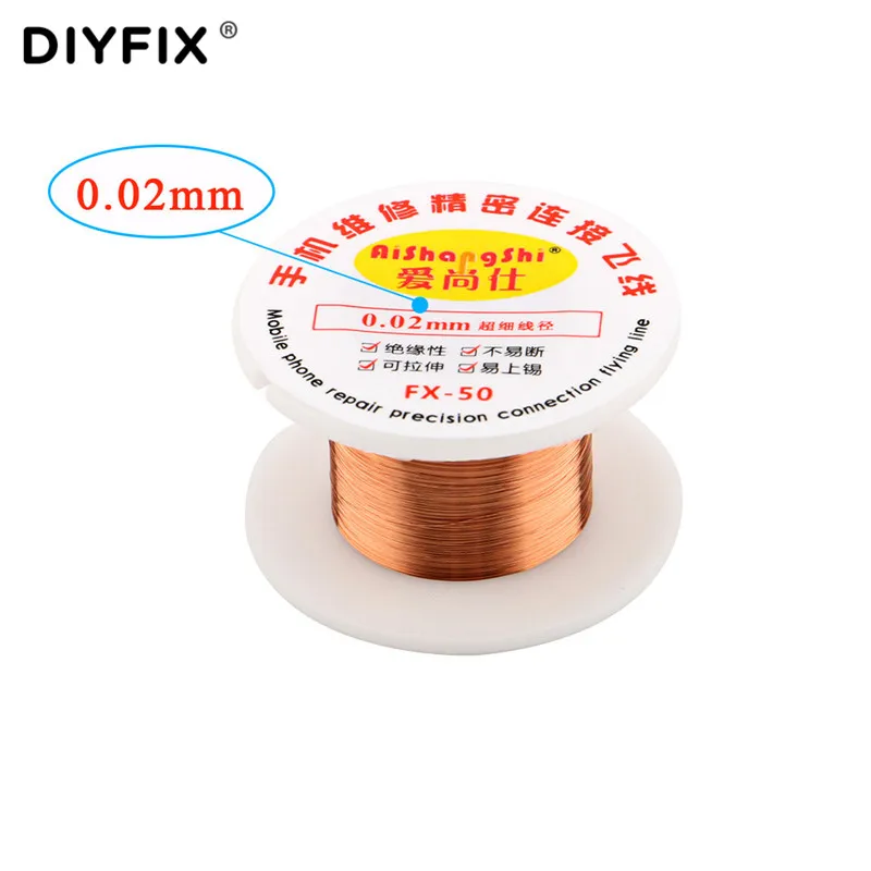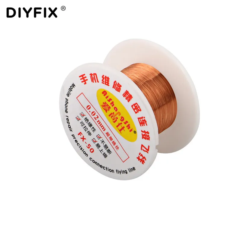 Соединительная проволока для печатной платы DIYFIX, 0,02 мм x 50 м, медная паяльная проволока, пусковая линия для микросхем iPhone, инструменты для сварки, обслуживания и ремонта