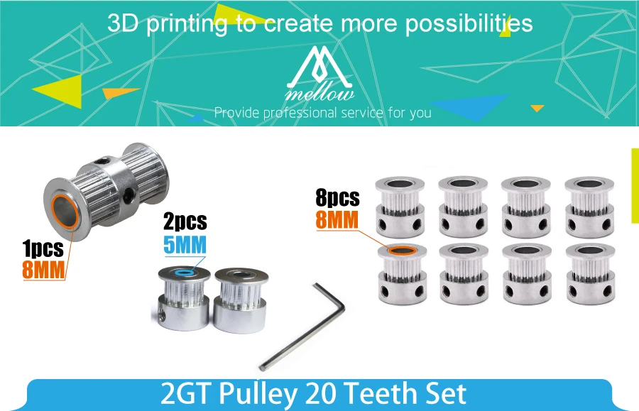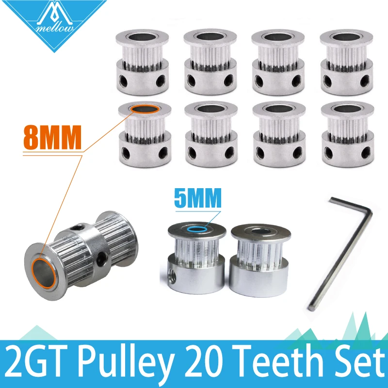 Детали для 3D-принтера UM2 Ultimaker2 2GT 6 мм, шкив с 20 зубьями, отверстие 8 мм + GT2 с 20 зубьями, отверстие 5 мм + двухсторонняя шестерня с 20 зубьями 8 мм