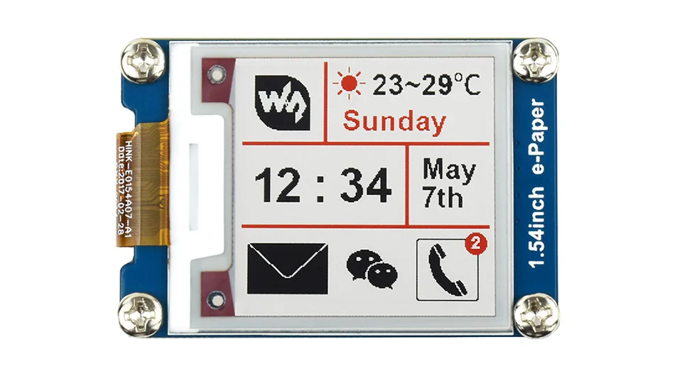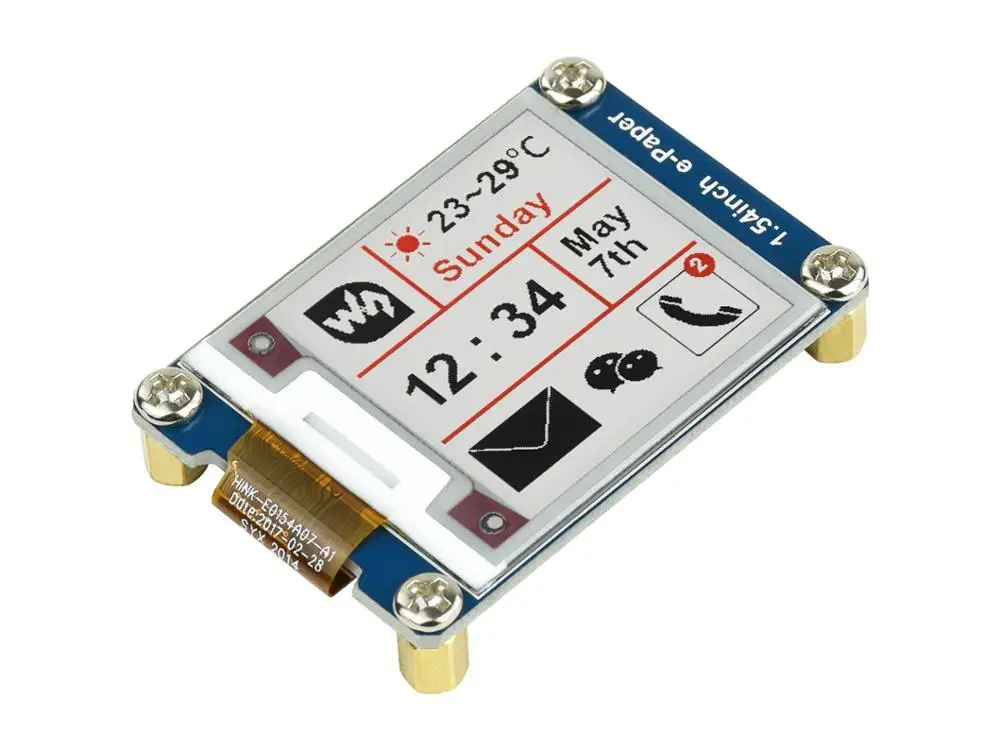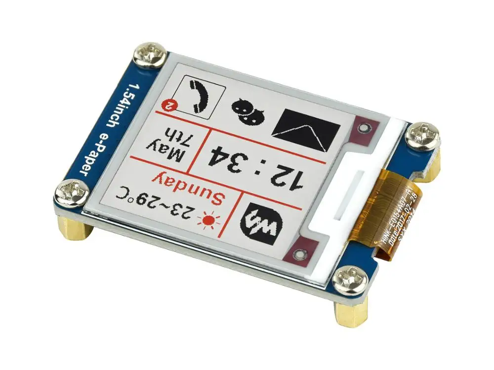 Это модуль дисплея E-Ink, 1,54 дюйма, 200x200 разрешение, со встроенным контроллером, общаясь через интерфейс SPI, поддерживает красный, черный и белый трехцветный дисплей.