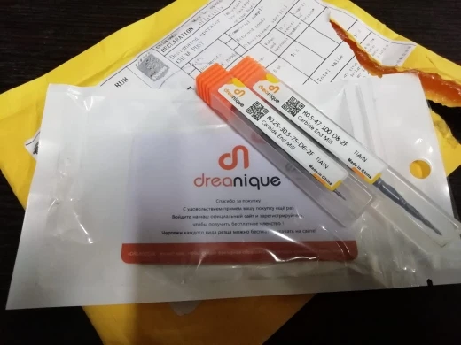 Доставка быстрая, трек отслеживался. Фрезы с виду отличные, но пока в деле не проверяли. Продавца рекомендую!
