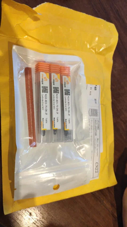 Пришли в хорошем состоянии, к качеству претензий нет, режет дерево как масло. Сам виноват что не заметил что фрезы 3.175 в диаметре, при такой цене можно купить взрослый размер