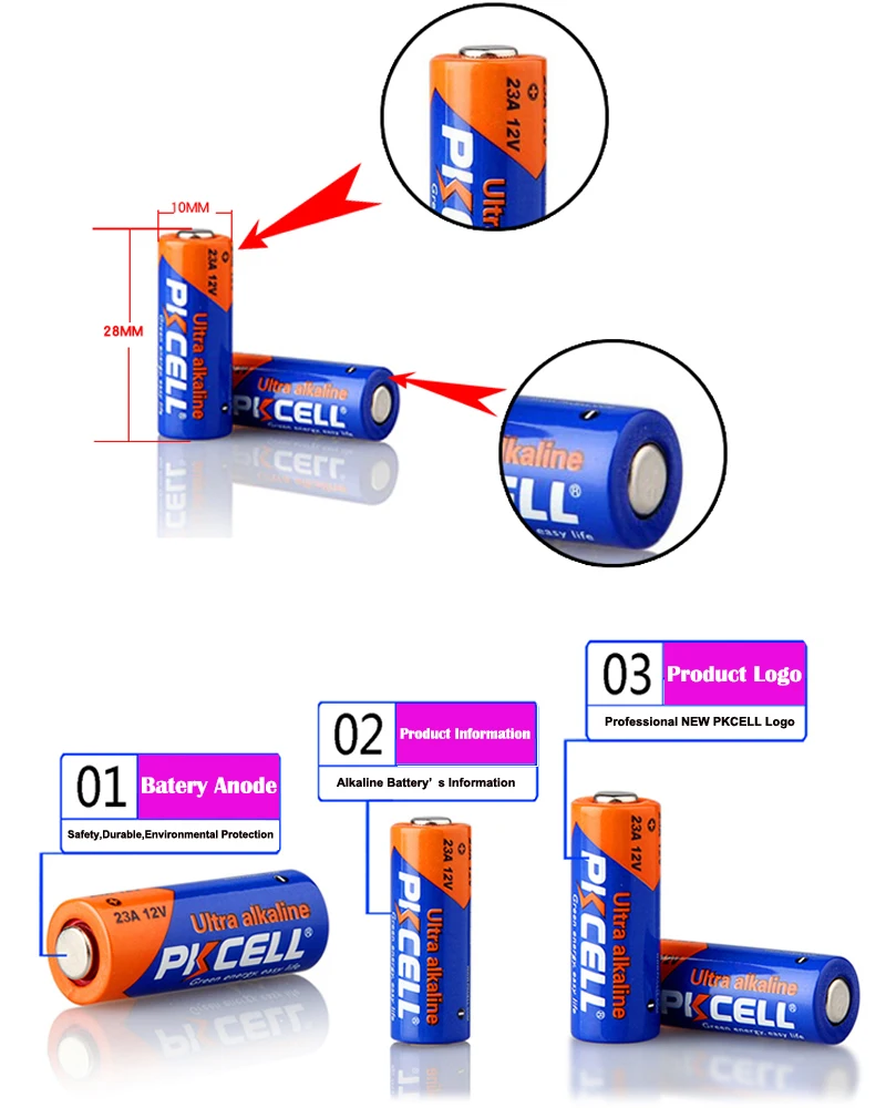 48x щелочная батарея PKCELL 12v 23a 8F10R K23A L1028 23A A23 V23GA ...