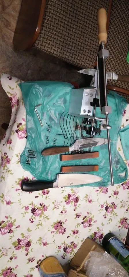 Ножеточка хорошая, ножи точатся очень быстро и легко до бритвенной остроты. Камни в комплекте вполне неплохие, только мне не повезло: пока посылка ко мне ехала, камень на 120 сломался напополам. Ну да не страшно, тем более он для грубого снятия метала. Инструкции по сборке, пожалуй, тоже не хватает, идти на страницу товара видео смотреть не слишком удобно, но тоже мелочь.