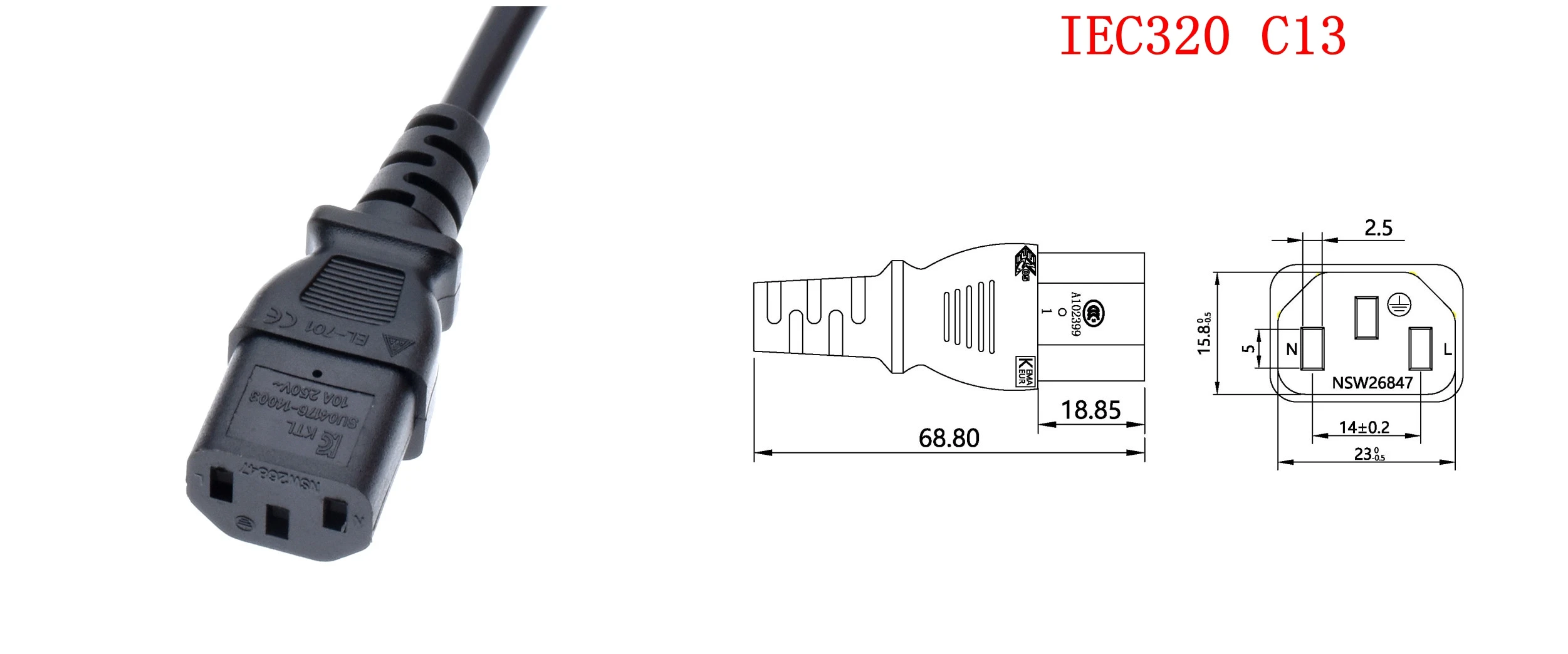 Шнуры питания CEE77 к IEC C13, 10 а16 А, 250 В, приблизительный кабель 0,75 мм, короткий шнур питания C13, 1 фут30 см *