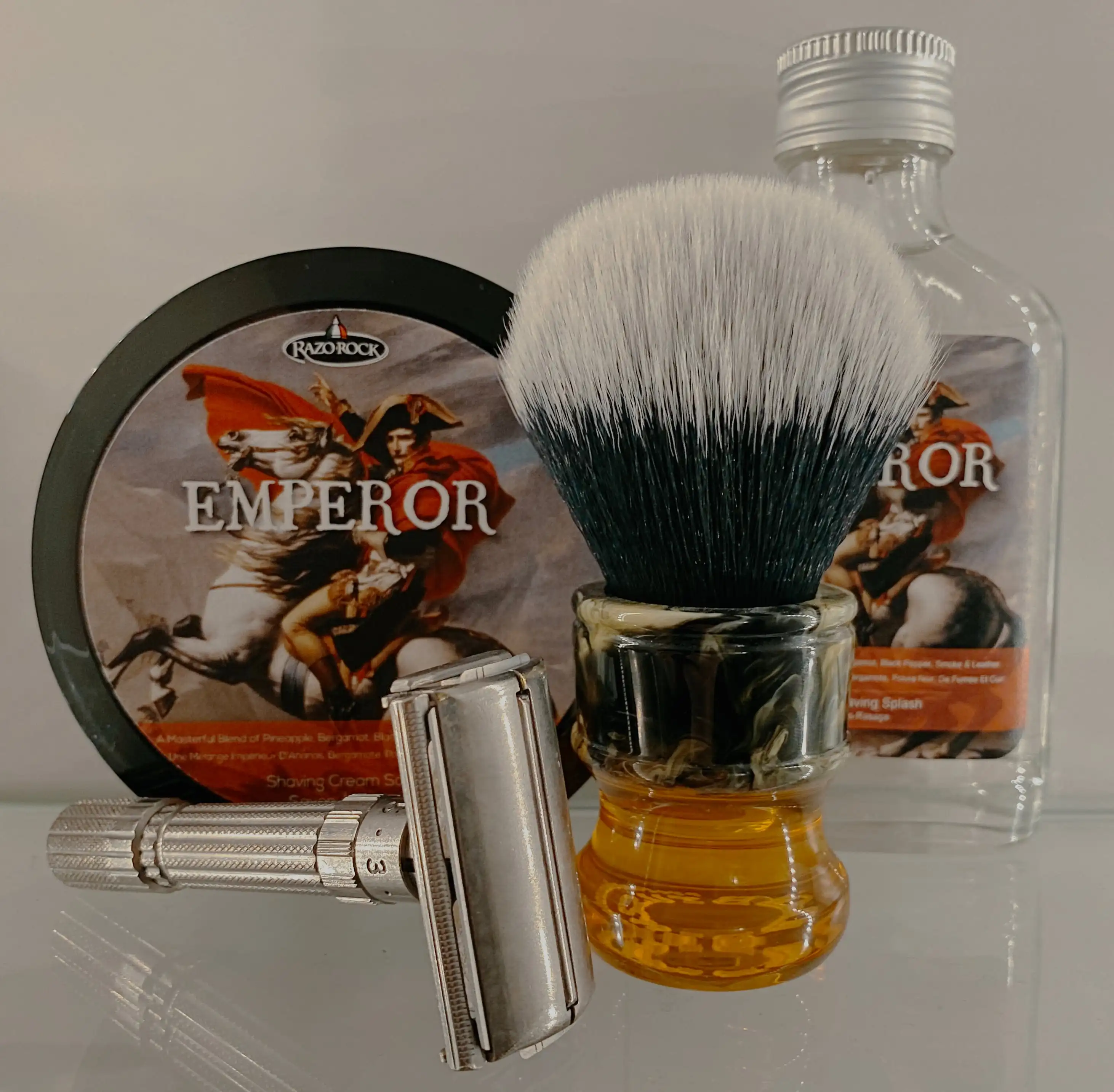 Синтетический барсук, который отлично работает. Пена Razorock san Valentino крепится прямо на лицо. Поролоновый Барсук!
