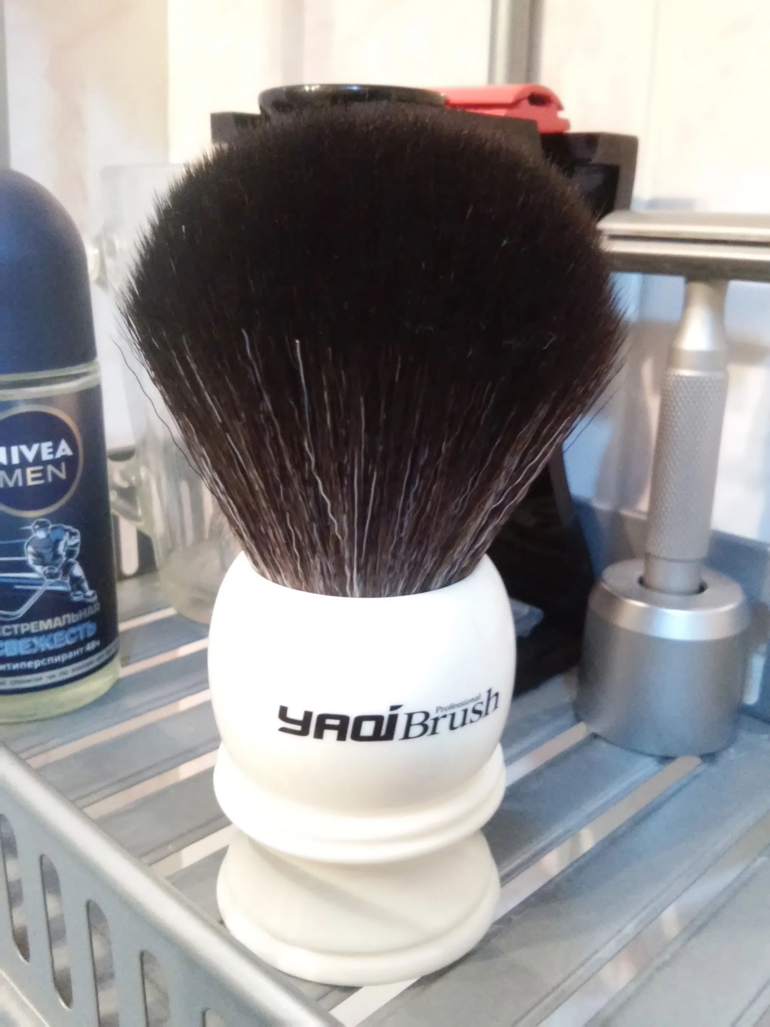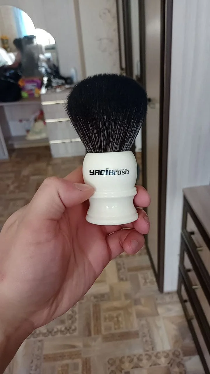 Хороший помазок. Заказываю уже второй. Достоинства - толстый узел, упругий волос, выносливая синтетика. Иногда при резкой смене направления движения волоски чуть-чуть колятся. Сначала насторожило, но позже стало восприниматься как пикантность. Помазок вбирает в себя очень много пены. Поэтому впервые показалось, что плохо взбивает, но выяснилось, что пены в помазке хватит на два бритья.