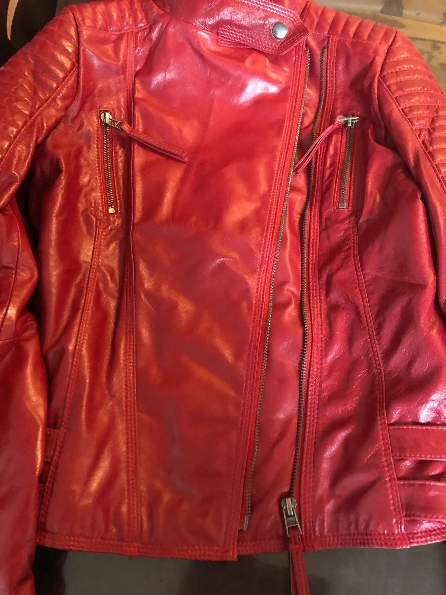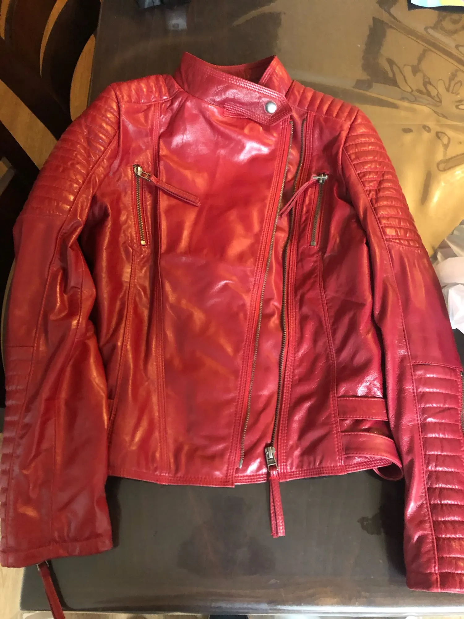 Куртка натуральная кожа 100%, пришла в Украину за 5 !!! дней на Новую почту, сразу после распаковки присутствует запах кожи. По качеству попались мелкие коцки, визуально не сильно заметные но всё же, за такую цену можно простить. По размеру советовалась с продавцом, он молодец, подсказал правильно. Я 155 см и 52 кг, продавец посоветовал размер XL села отлично, но я люблю носить под гольф тонкий. В целом куртку рекомендую, так как за такую цену натуральная кожаная куртка это восторг.