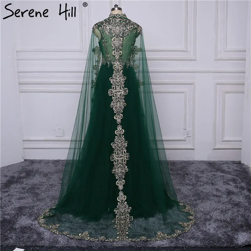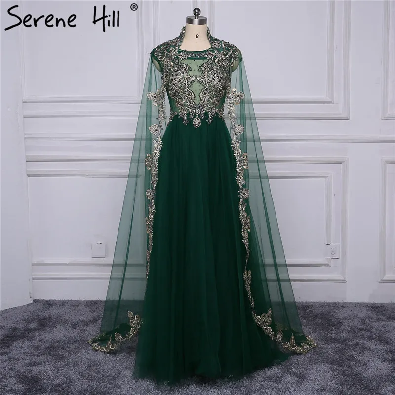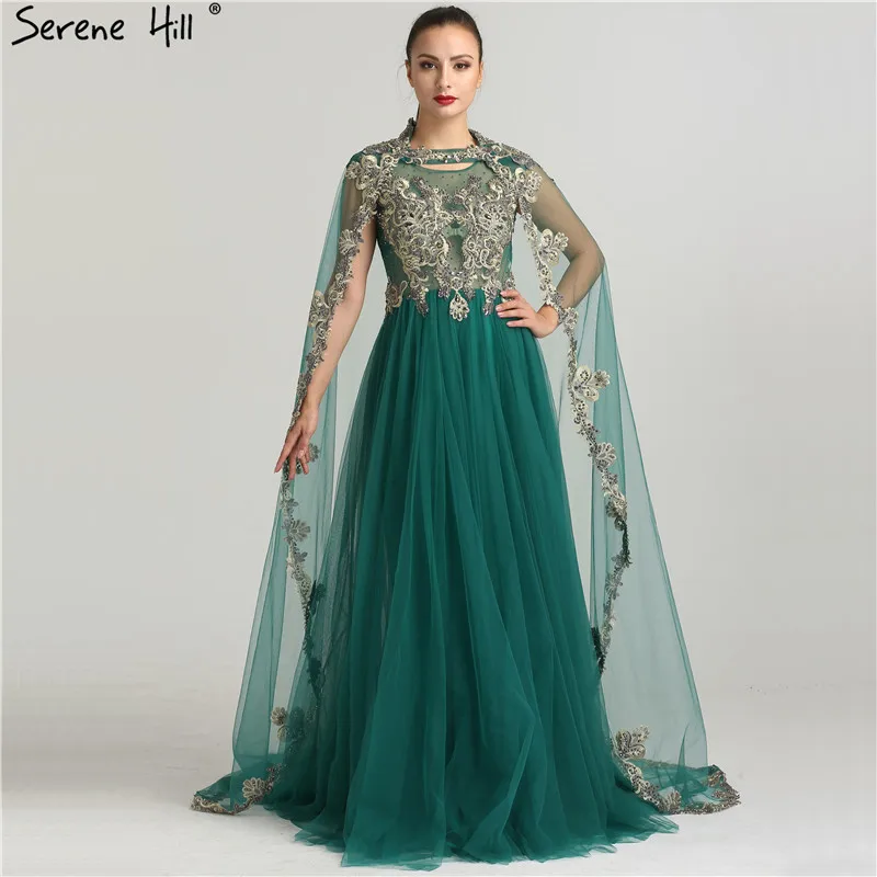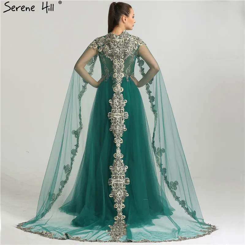 Темно-зеленые вышитые арабские мусульманские Вечерние платья 2020 реальное изображение Кристалл Съемная шаль официальное платье Дубай BLA6402