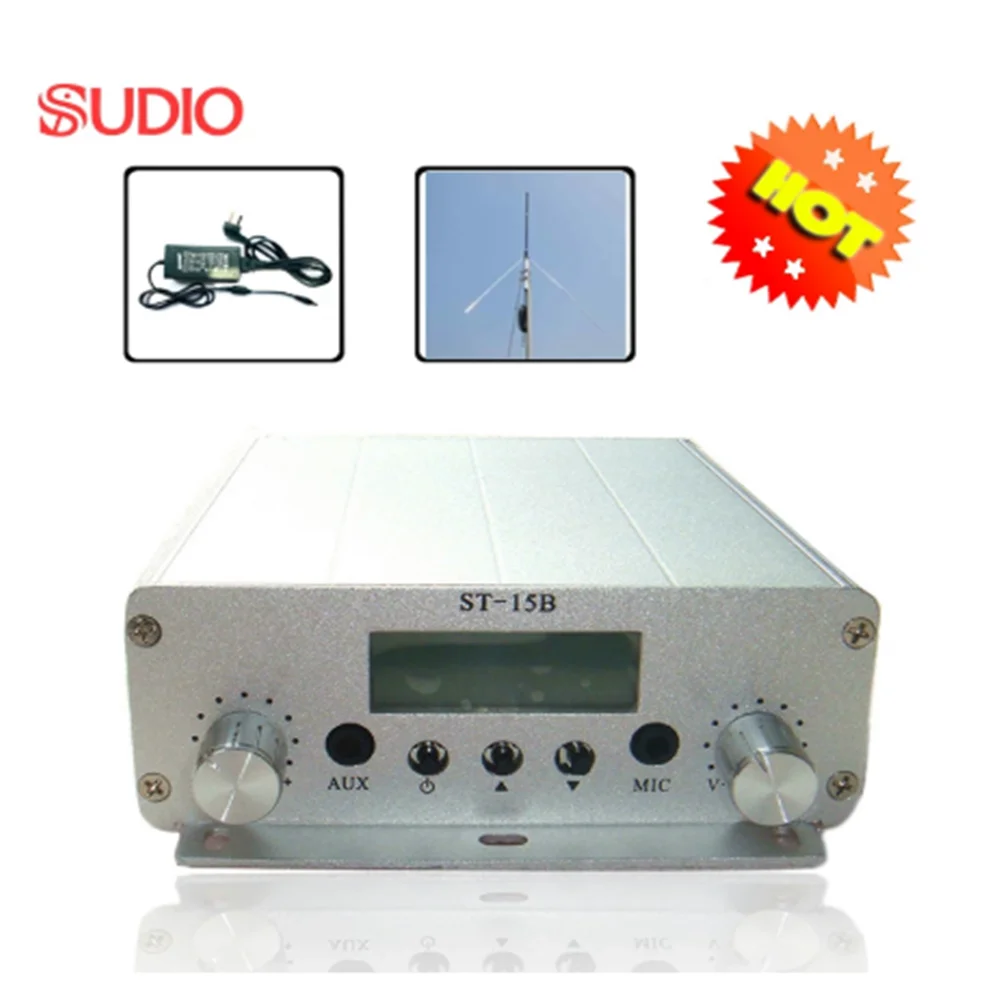 1 компл., 15 Вт, FM-передатчик, трансляционная стереосистема PLL, аудиостанция transimtter 87 МГц-108 МГц + Поддержка питания + антенна GP, whosesales