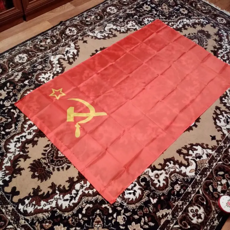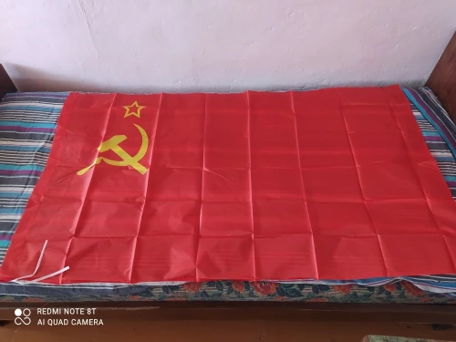 товар получил качество не очень но пойдет матерьял такой же как российском триколора а я рождён в СССР и присягу принимал под таким флагом аж руки задрожали когда его разворачивал