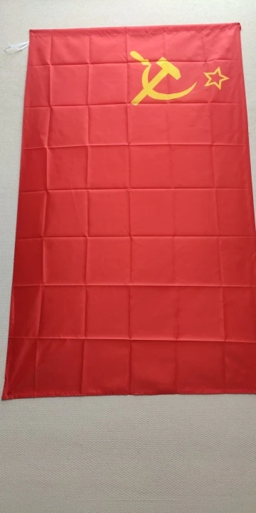 цвет слишком светлый - не тот оттенок, который должен иметь государственный флаг СССР и ткань тонковата. Серп и молот тоже не вполне неправильной формы. Но и то хорошо. в принципе терпимая имитация