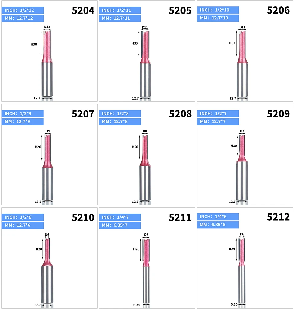 Диаметр хвостовика: 12,7 мм (1/2 ") 6,35 мм (1/4")