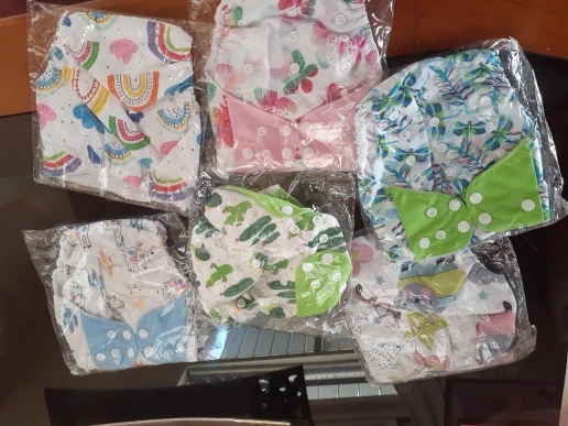 Подгузники хорошего качества, яркие, нитки не торчат. Внутренний слой отводит влагу от тела, таким образом вкладыш мокрый, а подгузник сухой или чуть влажный. Сохнут подгузники очень быстро. Один подгузник, если без покаков, можно использовать с заменой вкладышей - либо просто менять вкладыши, либо в течение дня использую два подгузника, пока один подсыхает, надеваю второй, вкладыши меняю каждый раз. Опрелостей и раздражений у ребёнка нет, раньше надевали только дома, теперь на прогулку тоже в них ходим. Расход одноразовых существенно сократился.