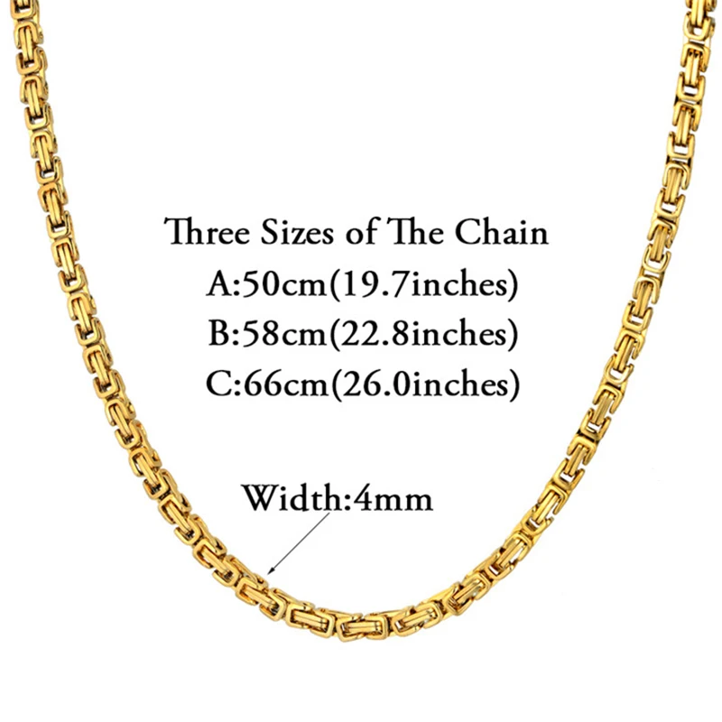 Мужское колье, колье с цепочкой 4 мм, золотистая цепочка 20 дюймов, 26 дюймов, византийская цепь из нержавеющей стали, мужское колье