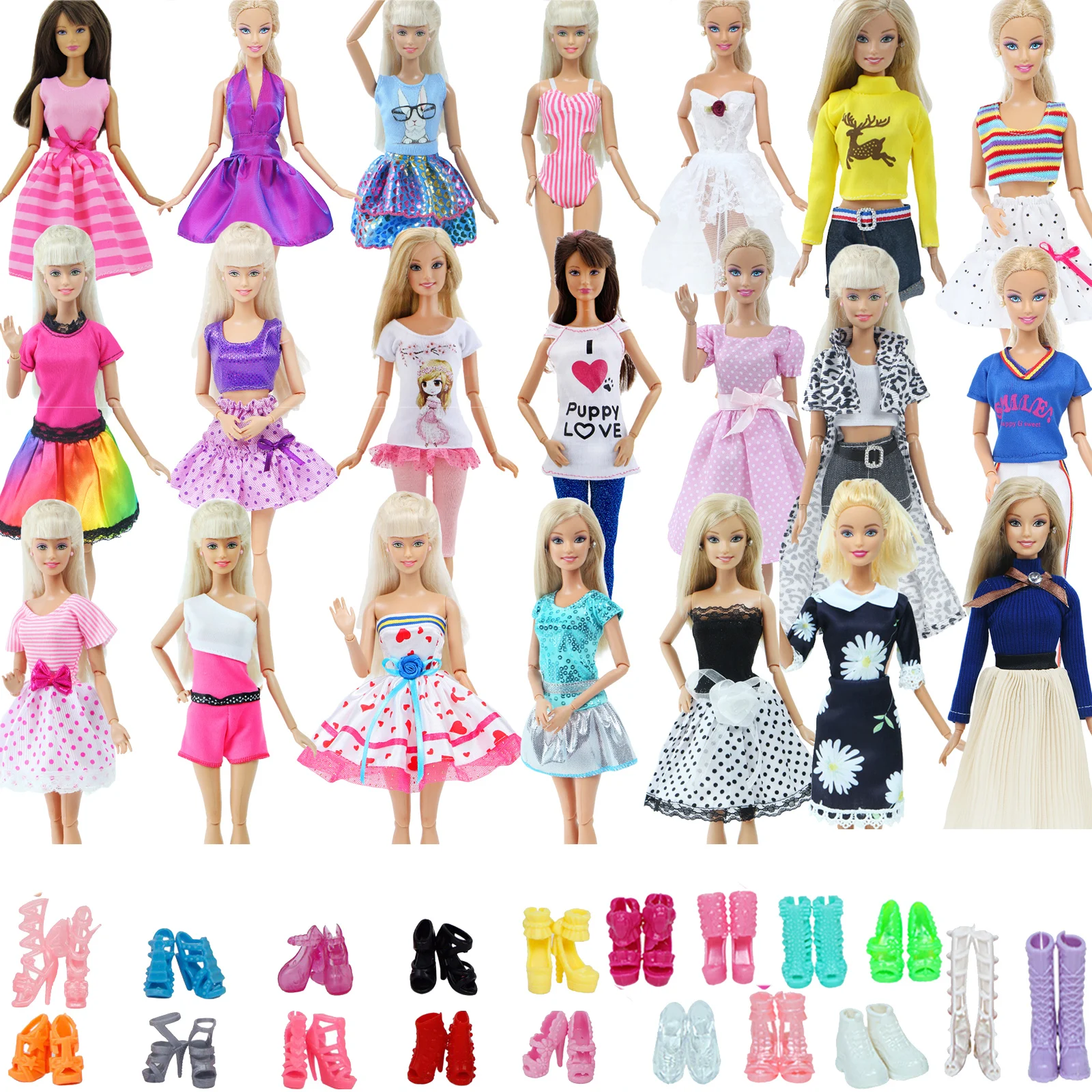 Комплект из 15 предметов = 5 блузок, брюк, платья, юбки, туфли на высоком каблуке 10 разных стилей, Одежда для кукол Барби, аксессуары