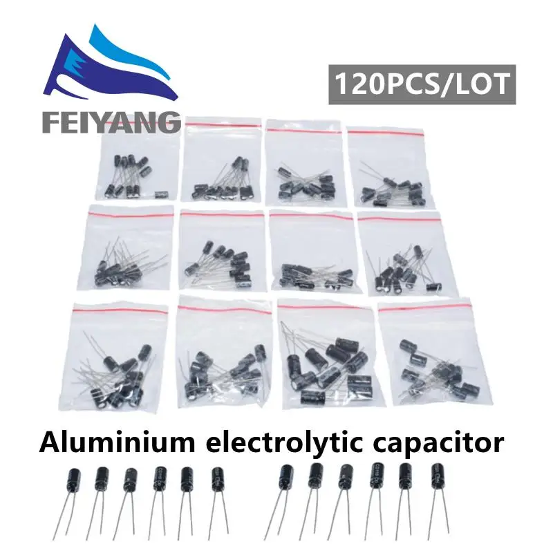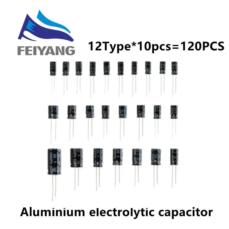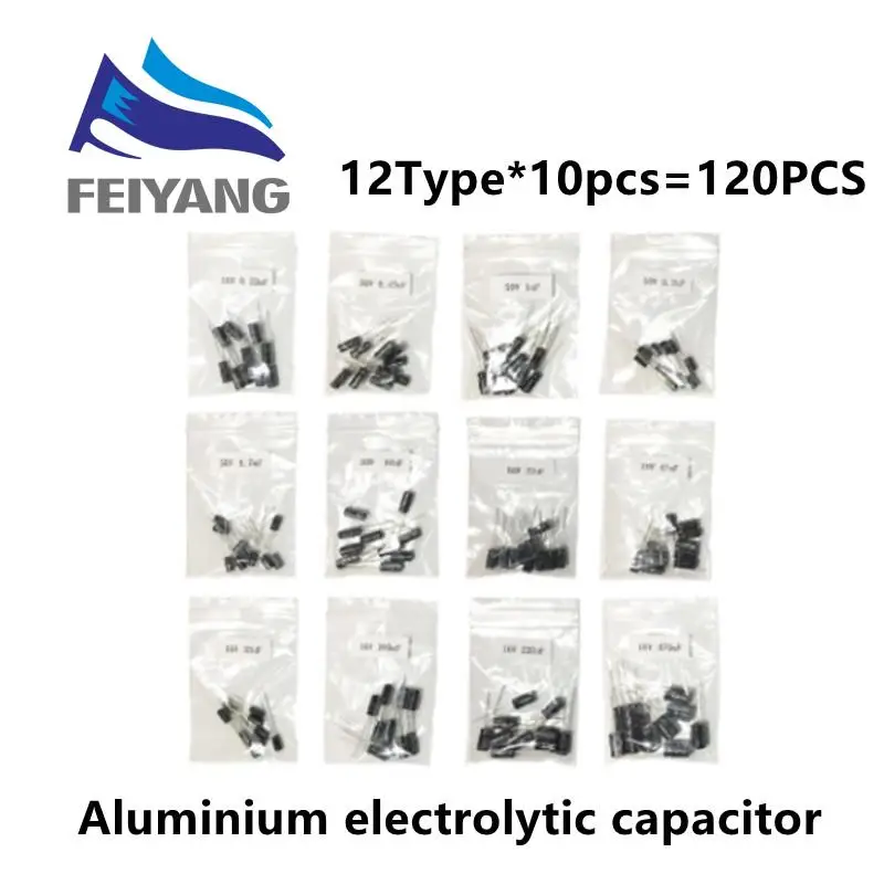 Набор алюминиевых электролитических конденсаторов, 12 значений, 120 мкФ 0,22 мкФ, 1 набор, 470 шт.