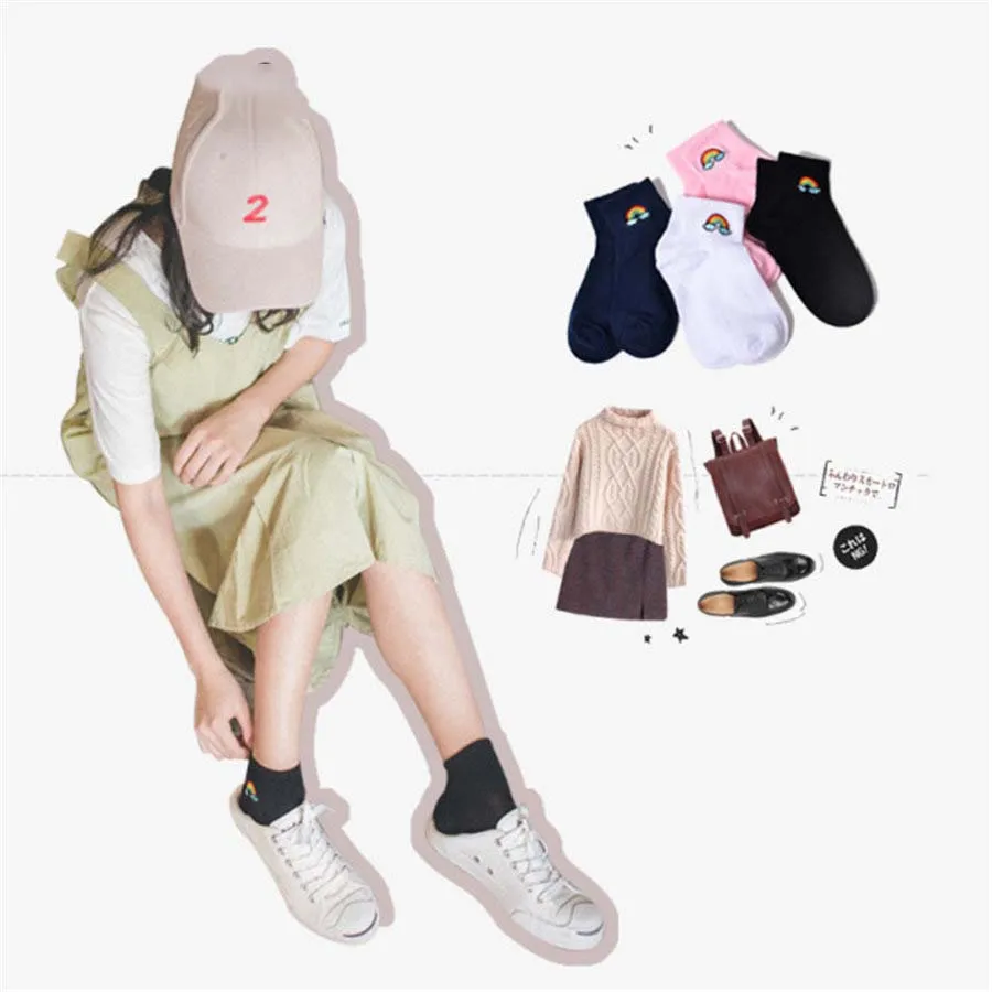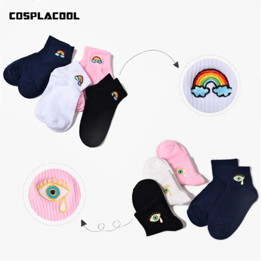 Модные женские носки в японском стиле Харадзюку; Креативные хлопковые носки с вышитыми радужными глазами; Милые носки Calcetines; Новинка; Забавные носки
