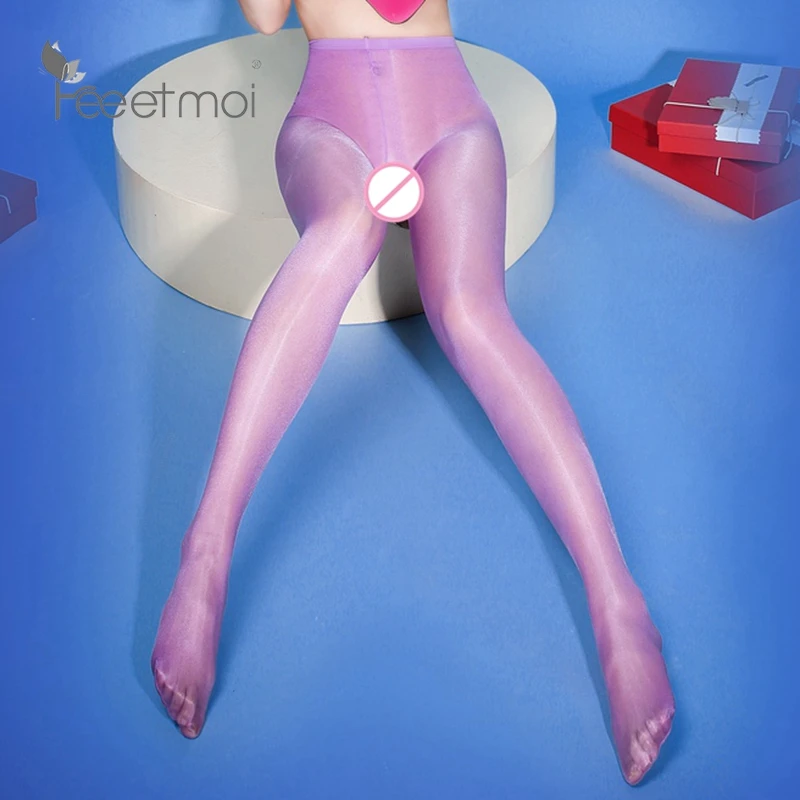 Дешевые прозрачные блестящие колготки с высокой талией для женщин колготки с открытой промежностью милые Лолиты карамельного цвета