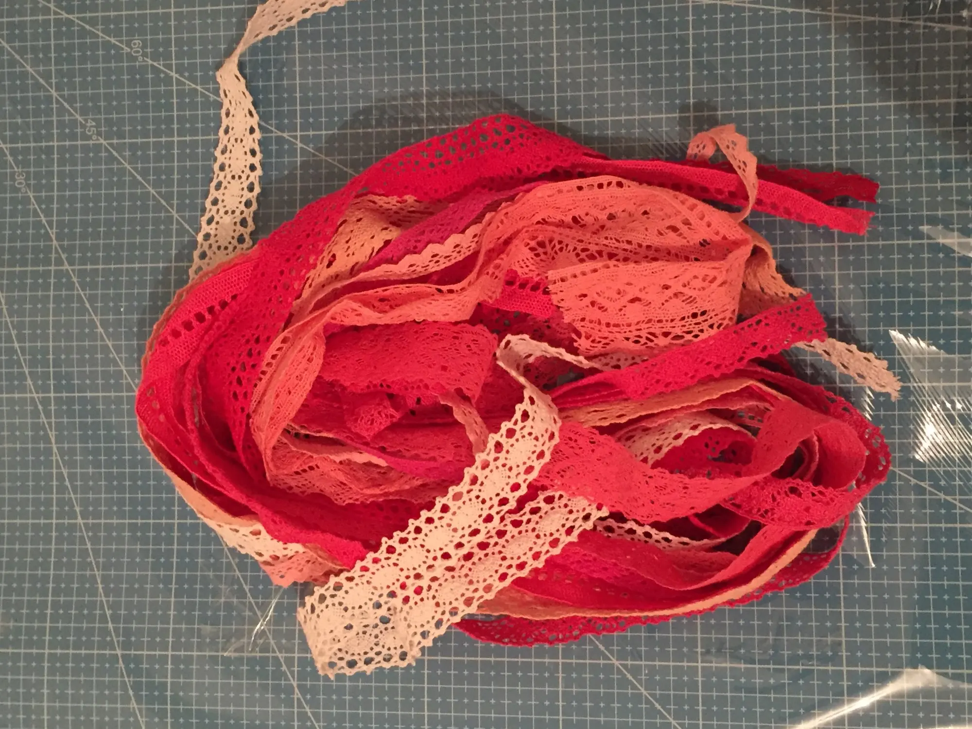 Тесьма пришля вся ярко розовая, кислотный тонов, хотел бедную, теперь сижу и думаю куда её потратить, что такого сшить и её пришить