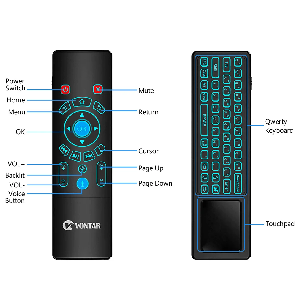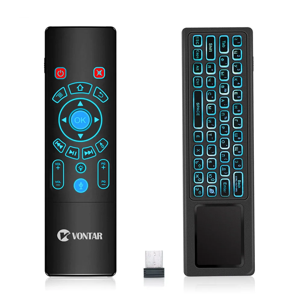 Пульт дистанционного управления VONTAR T8 Plus с подсветкой, 2,4 ГГц, Air mouse, беспроводная клавиатура и сенсорная панель, голосовое управление, для ТВ-приставки Android, мини-ПК, проектора
