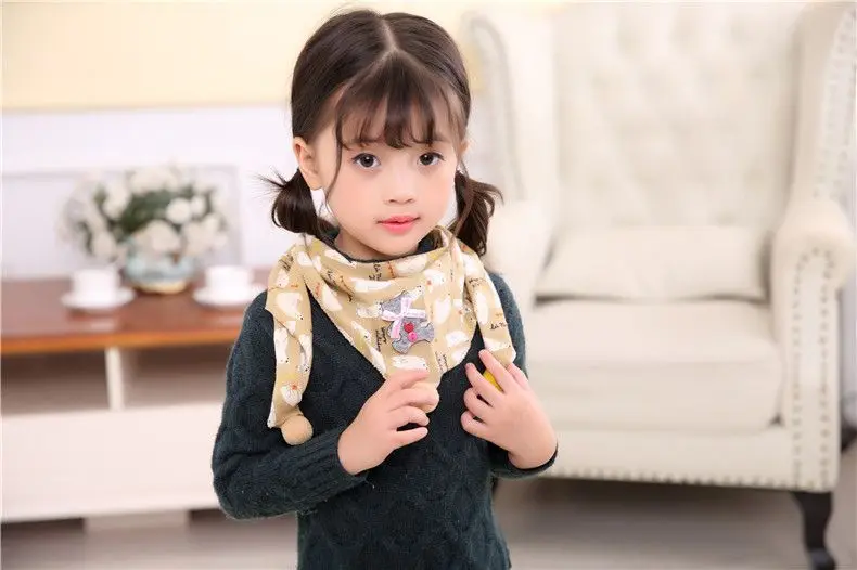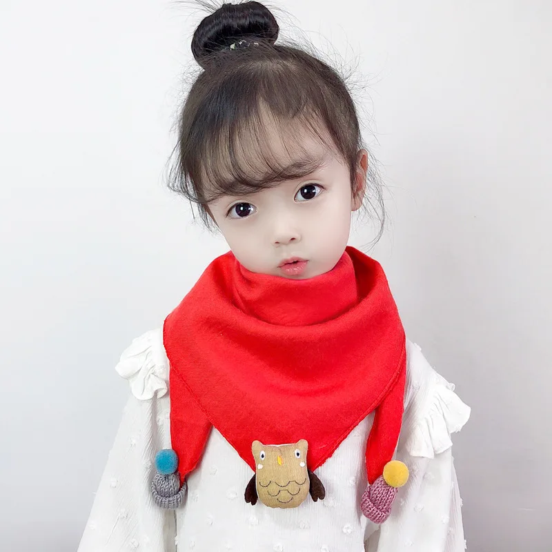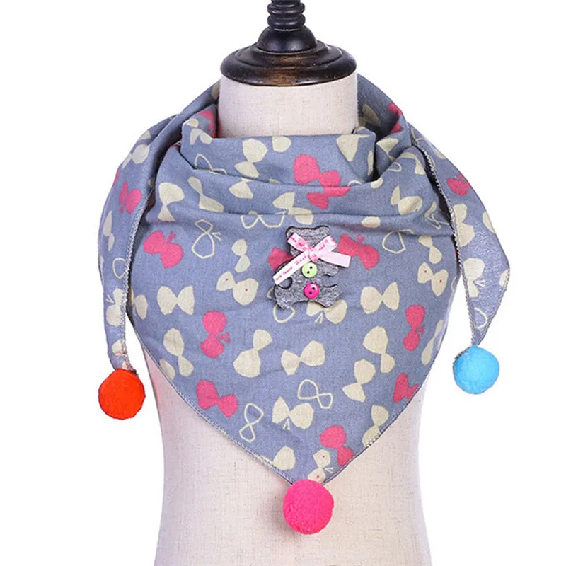 Осенне-зимний детский хлопковый треугольный шарф для мальчиков и девочек, цветной шаровой шарф, модный детский шейный платок с воротником, Детская шаль