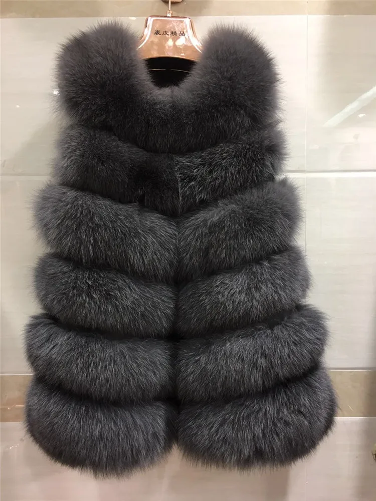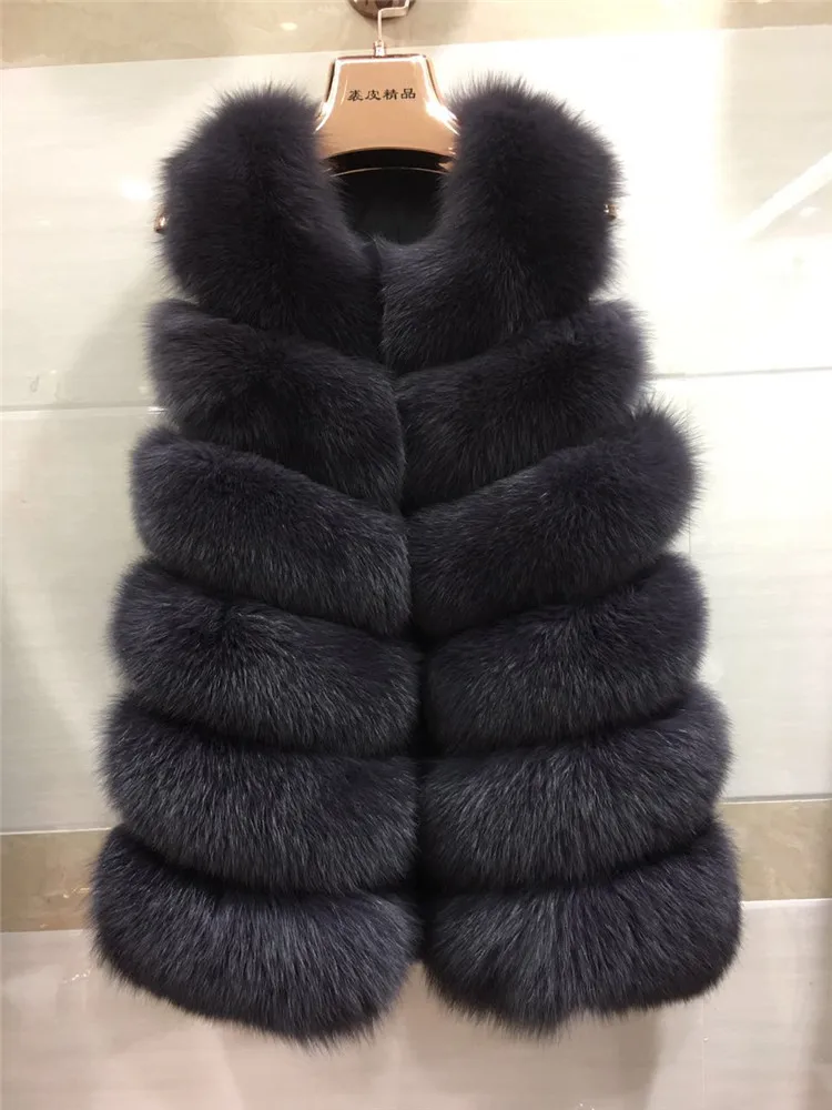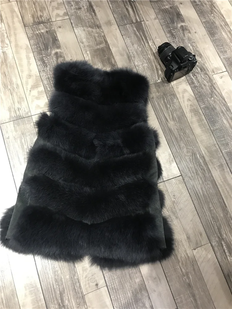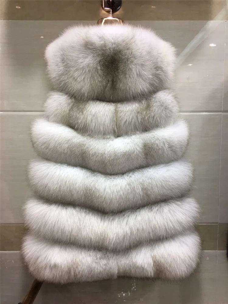Женский Длинный Меховой жилет, зимний жилет из 100% натурального Лисьего меха, пальто без рукавов, хорошее качество
