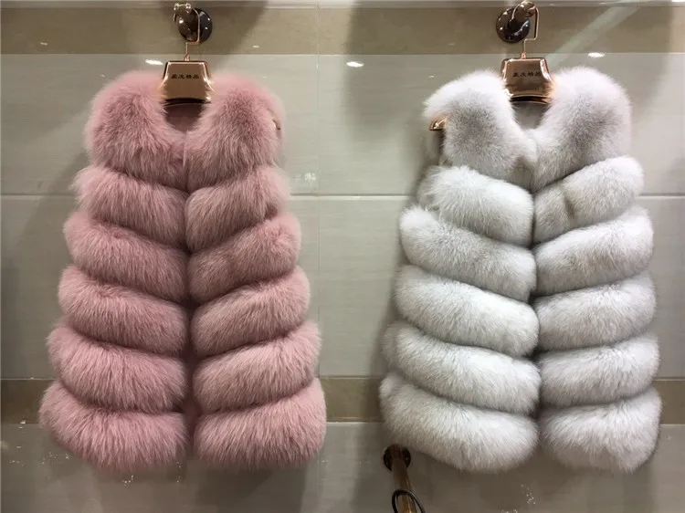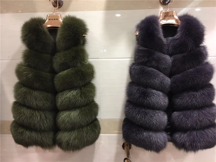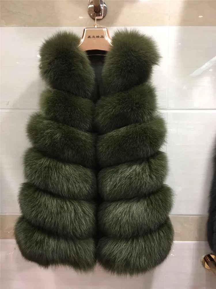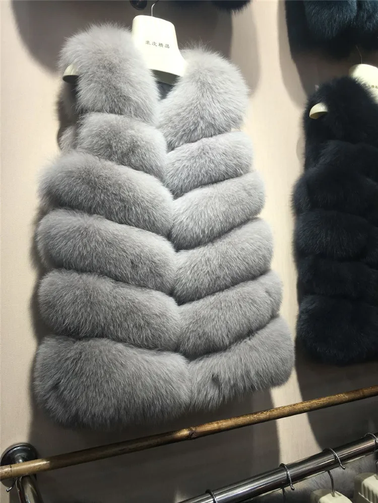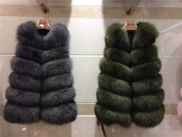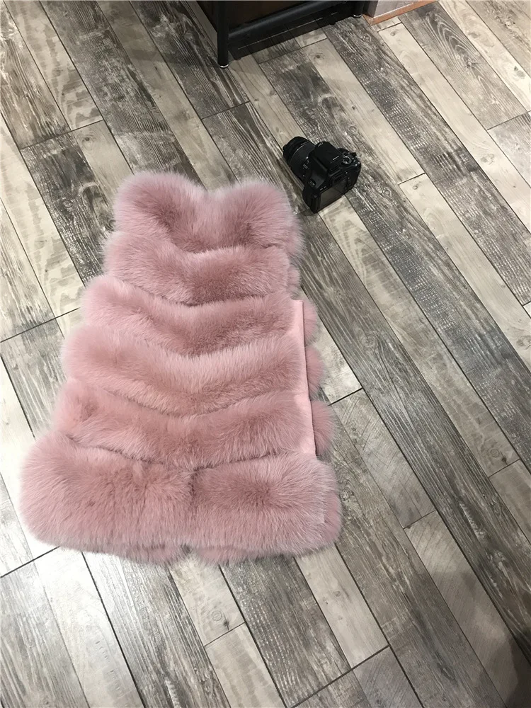 Женский Длинный Меховой жилет, зимний жилет из 100% натурального Лисьего меха, пальто без рукавов, хорошее качество