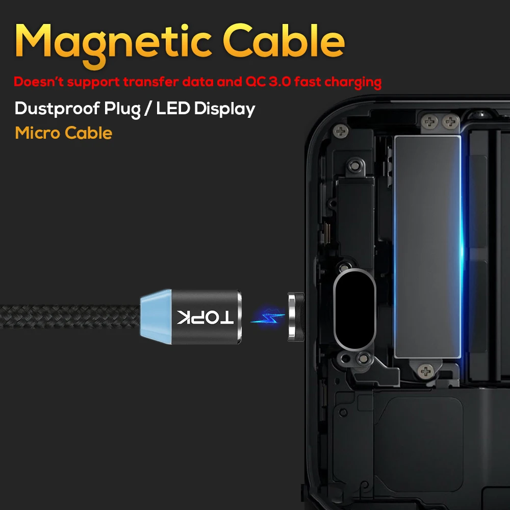 Магнитный кабель TOPK AM23, USB Type-C, Micro USB, Lightning
