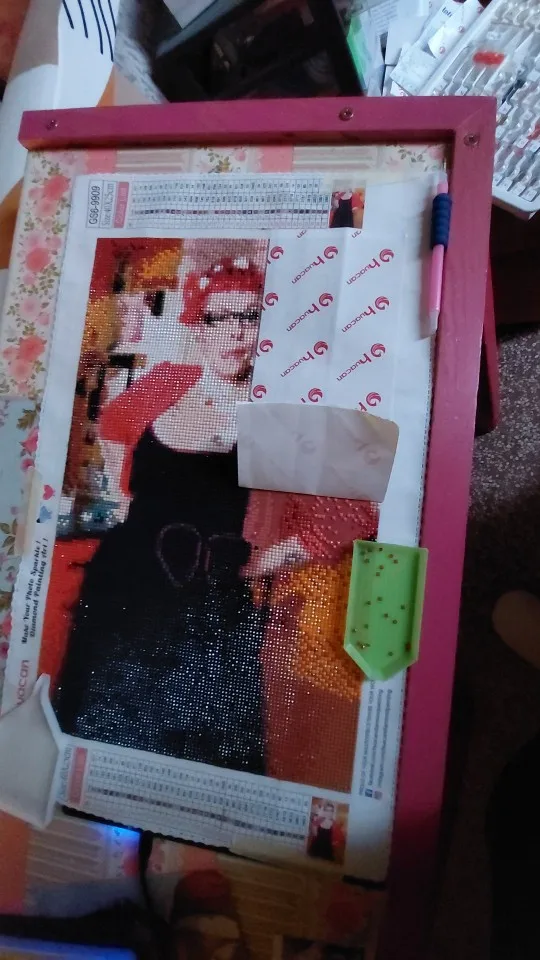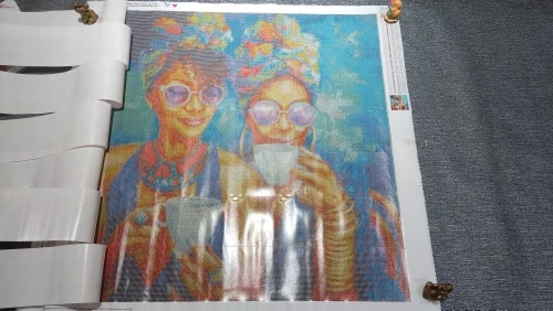 картина офигенная. я заказываю не в первый раз картины такого плана, но заказывала у других продавцов раньше. у этого продавца офигенная комплектация, инструменты дико качественные, я была очень удивлена. почта России конечно немного намудрила и моя посылка по городу каталась неделю, а так доставка меньше месяца при том, что я заказала 11.11 и дикий завал. все кристалики в зип пакетах, очень удобно, я дико довольна, фото прилагаются(размер 50х40). ПРОДАВЕЦ К СЛОВУ ОФИГЕННЫЙ. Последнее фото - то, что я уже собрала краешек.