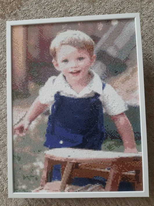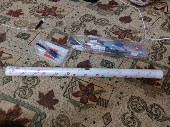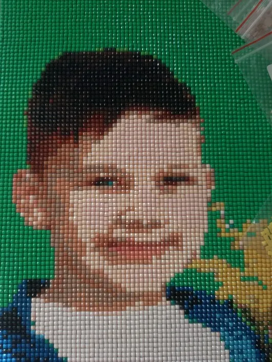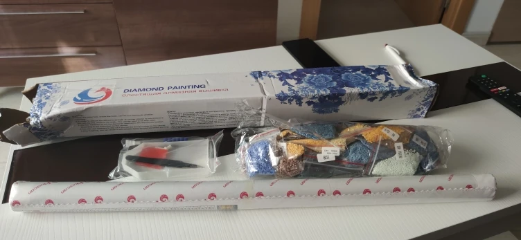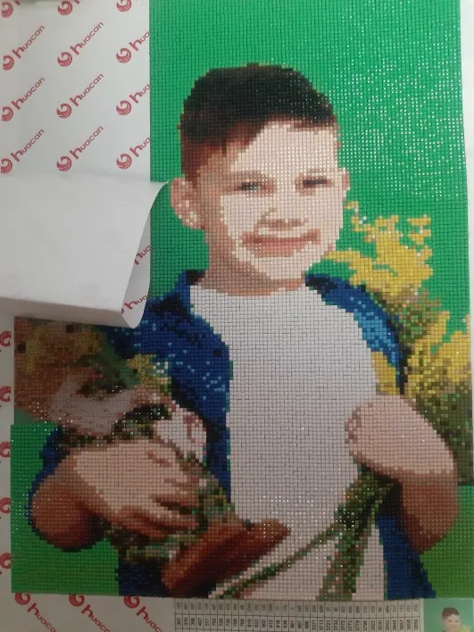 Индивидуальный заказ - портрет внука. Посылка в Украину пришла очень быстро, за 19 дней. Упакована очень надежно, в картонную коробку. Полотно качественное, в одном месте был незначительный залом, но это всё устраняется, заявленный размер 50×70, по факту 68*48.5. Для удобства защитная бумага разделена на полосы. Стразы распределены по индивидуальным зип пакетам. По количеству всё совпадает. Набор инструментов: большой лоток, очень хороший пинцет, стилус с двумя дополнительными насадками на 4 и на 11 страз и 2 массы для стилуса. Заказом очень довольна. После выкладки дополню отзыв. А пока спасибо продавцу. Однозначно рекомендую.