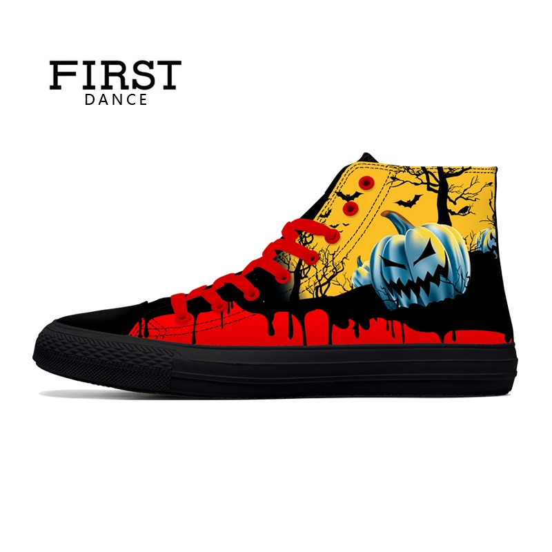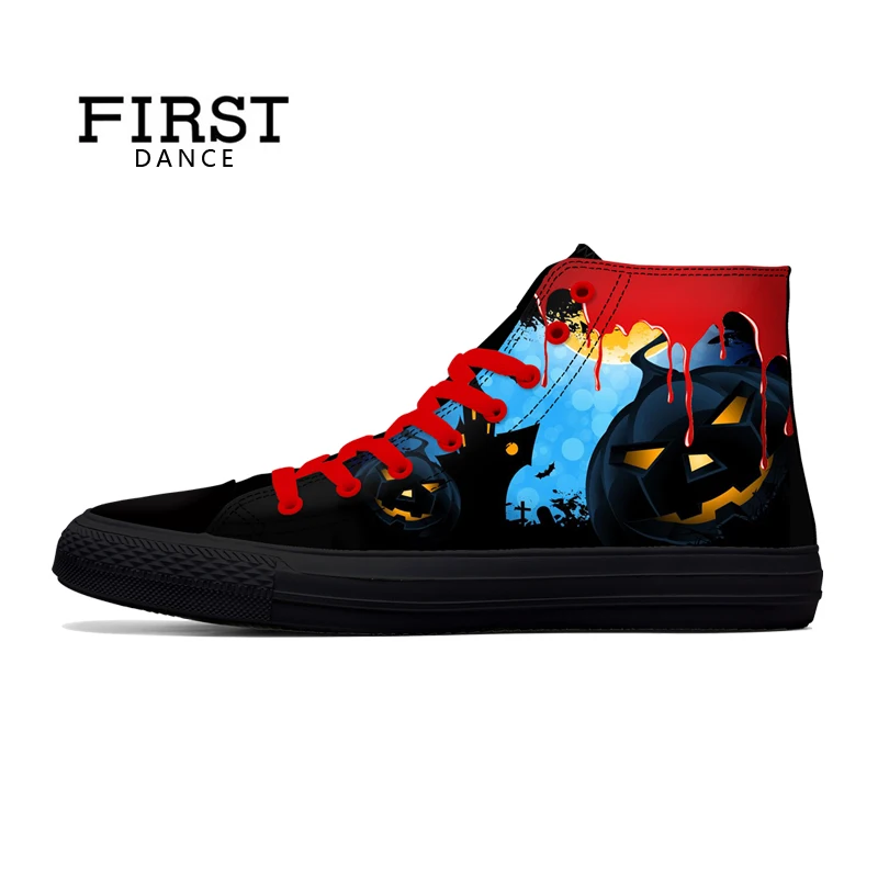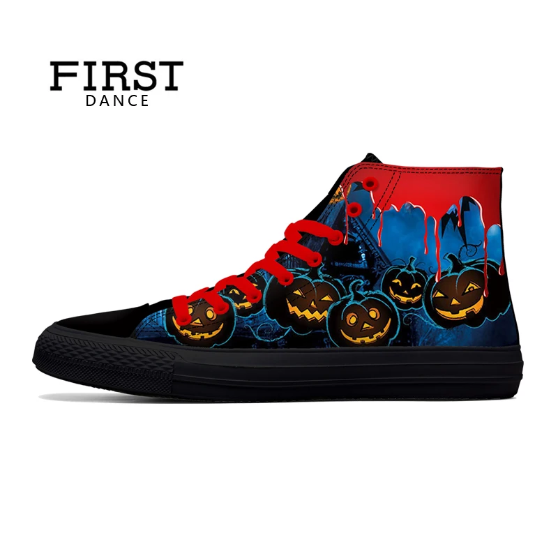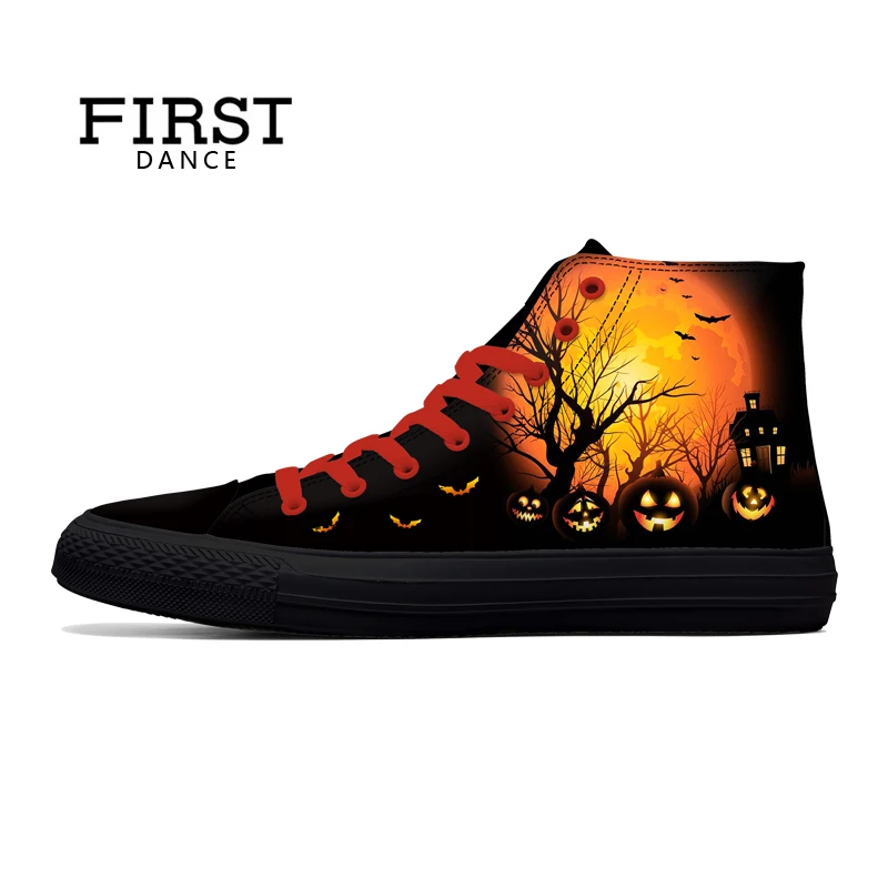 Туфли мужские высокие классические, модные холщовые кроссовки с граффити, тыква, 3D принтом, Хэллоуин, повседневные, черные