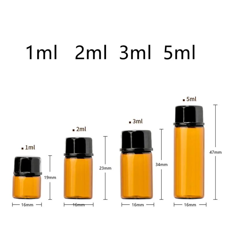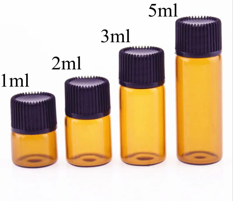 Флакон стеклянный Янтарный с пластиковой крышкой, 100 шт., 1 мл, 2 мл, 3 мл, 5 мл