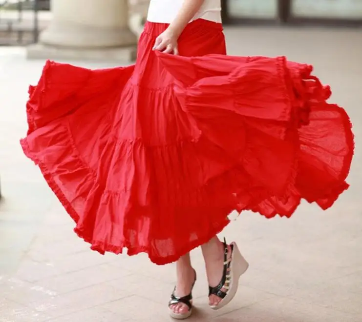Юбка макси Женская, из льна и хлопка, с эластичной талией, лето винтажная длинная юбка