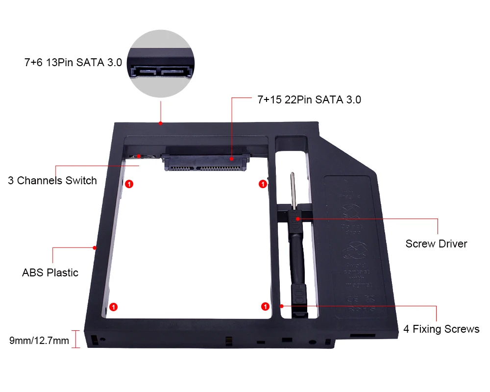 Карман CHIPAL универсальный для установки второго жесткого диска 9,5 мм, SATA 3,0, 2,5 дюйма, 9 мм, 7 мм, чехол для SSD, корпус для ноутбука DVD-ROM, CD-ROM, Optibay